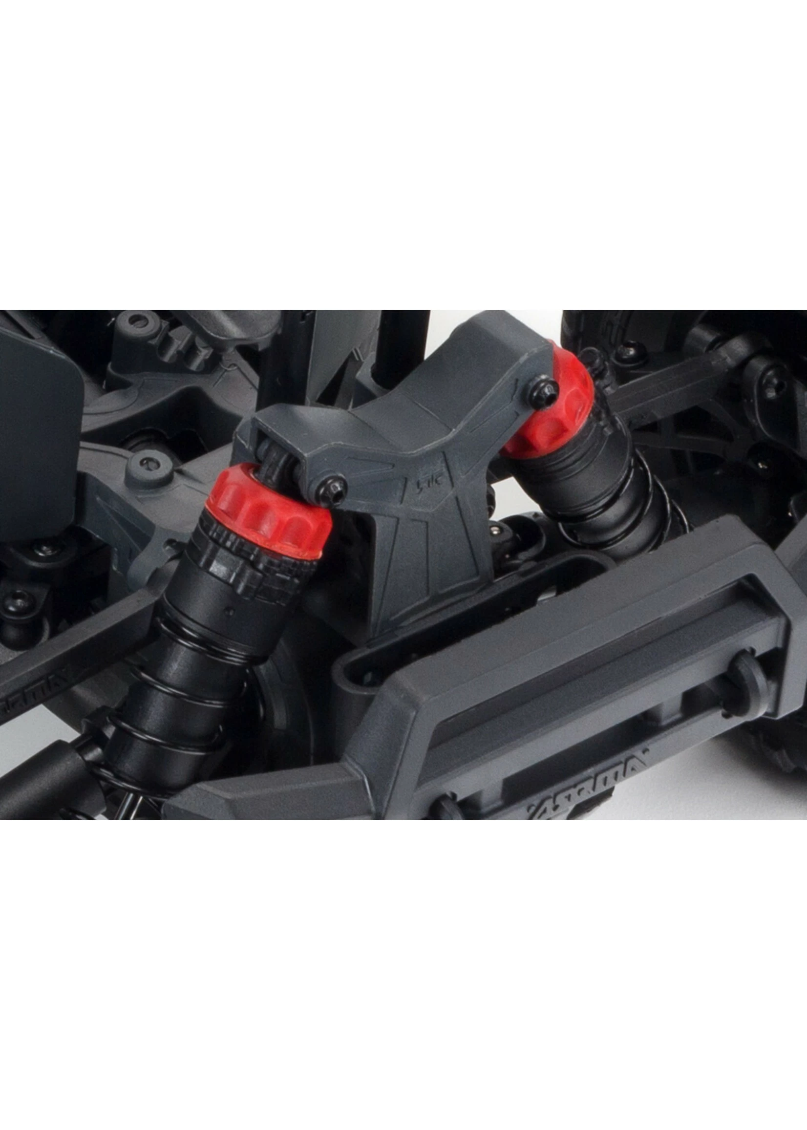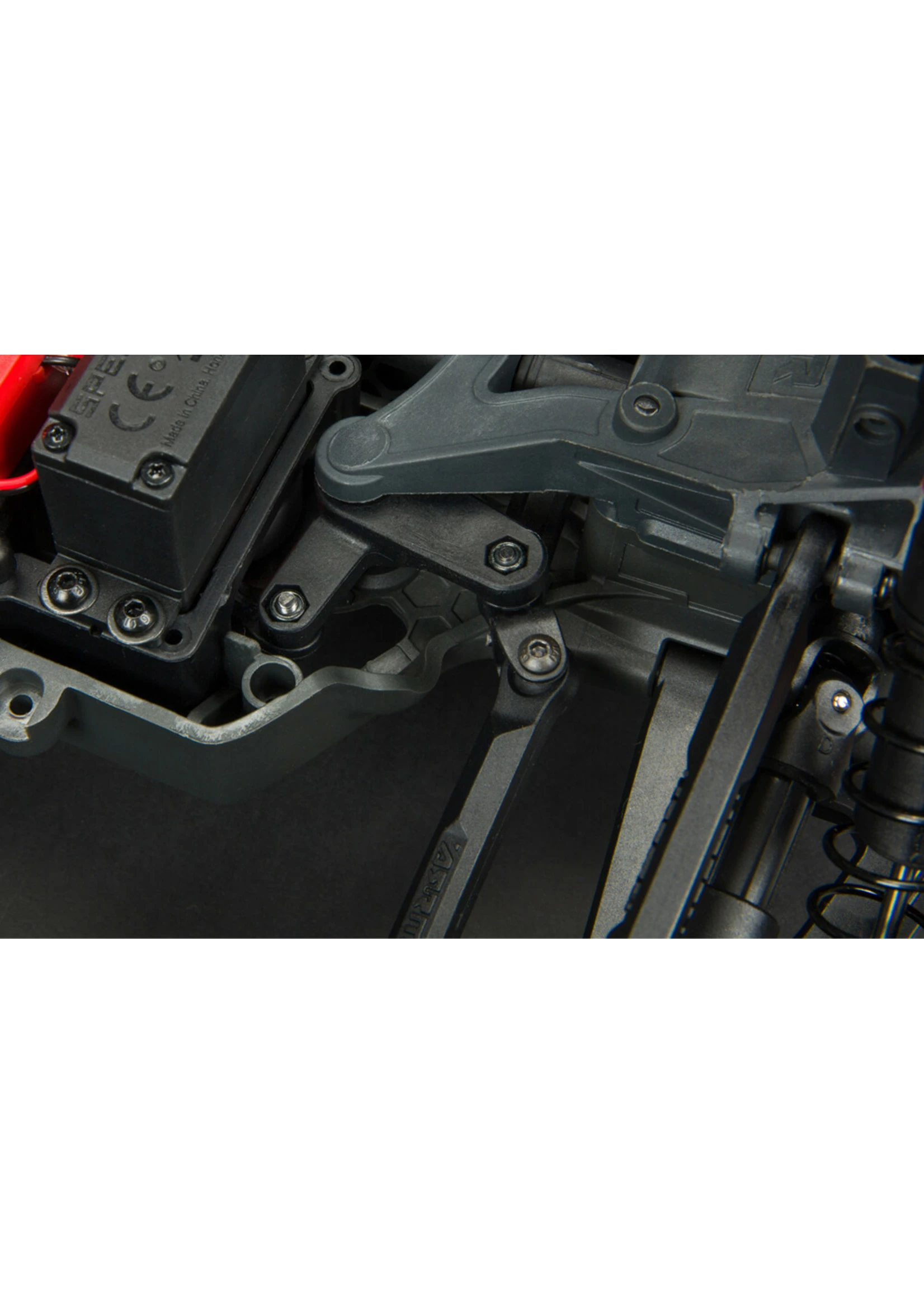 The self-bleeding, oil-filled shocks, now with silicone O-rings, use a tried and tested, coil-over design for simple maintenance and amazing handling. Their innovative rod-end has a molded-in spring perch for extra toughness. High chassis guards limit the amount of dirt and debris that can get into the chassis tub. Shock-absorbing loops keep the front and rear bumpers secured to the chassis, offering defense against heavy impacts.