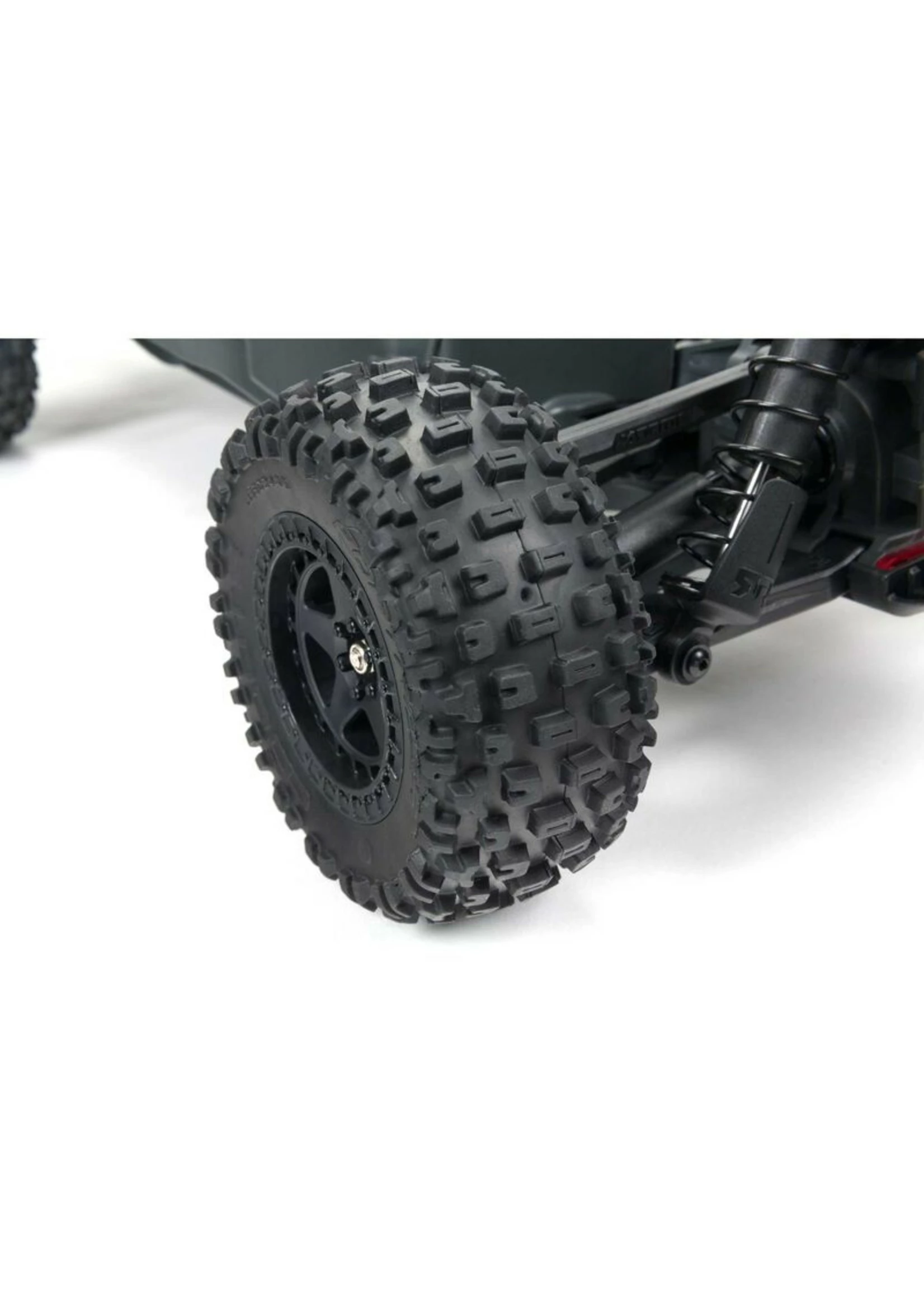 Its full-time 4WD transmission uses strong front, rear, and centerline telescopic driveshafts that can’t be lost during heavy impacts, unlike dogbones. A simple, dependable, responsive steering assembly complements the ultra-reliable drive system and features a servo horn with built-in servo saver. The SENTON™ 4X4 MEGA RTR includes the waterproof Spektrum™ SPMS650 digital servo for 20% more torque than the previous version’s ADS-5 servo.