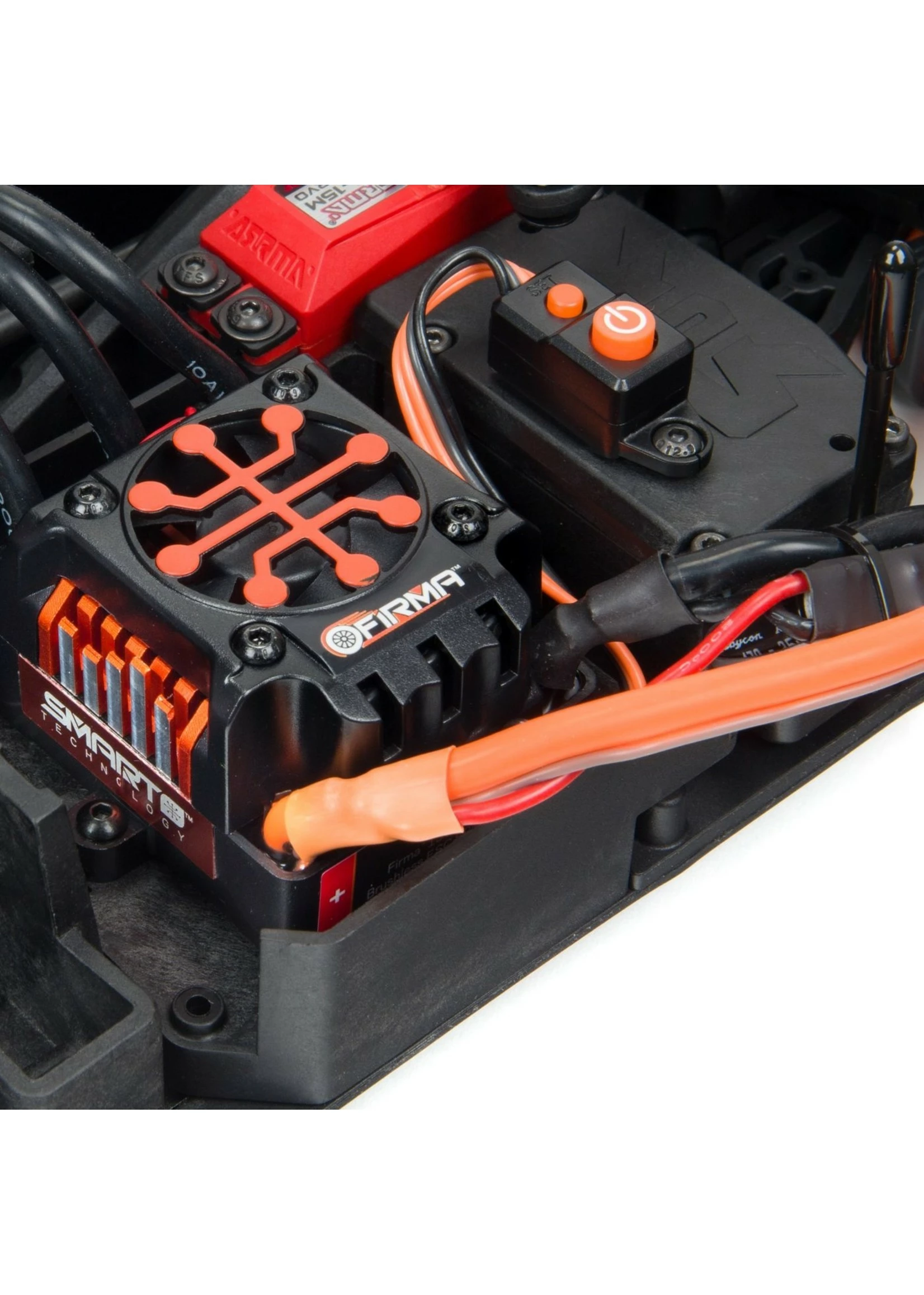 Speaking of throttle…ARRMA® has equipped the FELONYâ„¢ 6S BLX Street Bash 4WD RTR with the 3-channel Spektrum® DX3â„¢ radio and an SR6110AT receiver featuring AVC® (Active Vehicle Controlâ„¢) technology for high-speed stability. A convenient voltage level indicator is built into the transmitter which lets you easily track on-board Smart battery power. The vehicle’s brushless power system also features Spektrum® Firmaâ„¢ Smart components, so it’s easy to receive real-time updates of ESC temperature, receiver (BEC) voltage, drive pack voltage and motor RPM. Just download the Spektrum® Dashboardâ„¢ app for iOS or Android, available for free at the App Store or Google Play.