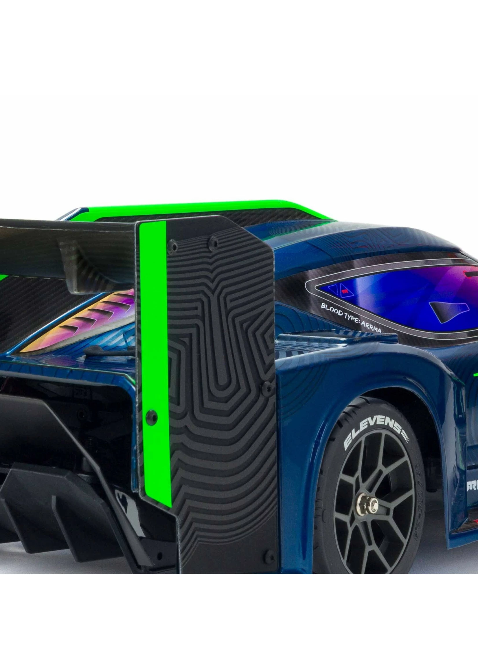 The aerodynamically tuned VENDETTAâ„¢ Speed Racer body includes tough high and low downforce wings. It’s available factory-finished in your choice of stunning green or blue matte and gloss effect paint schemes with scale decals.