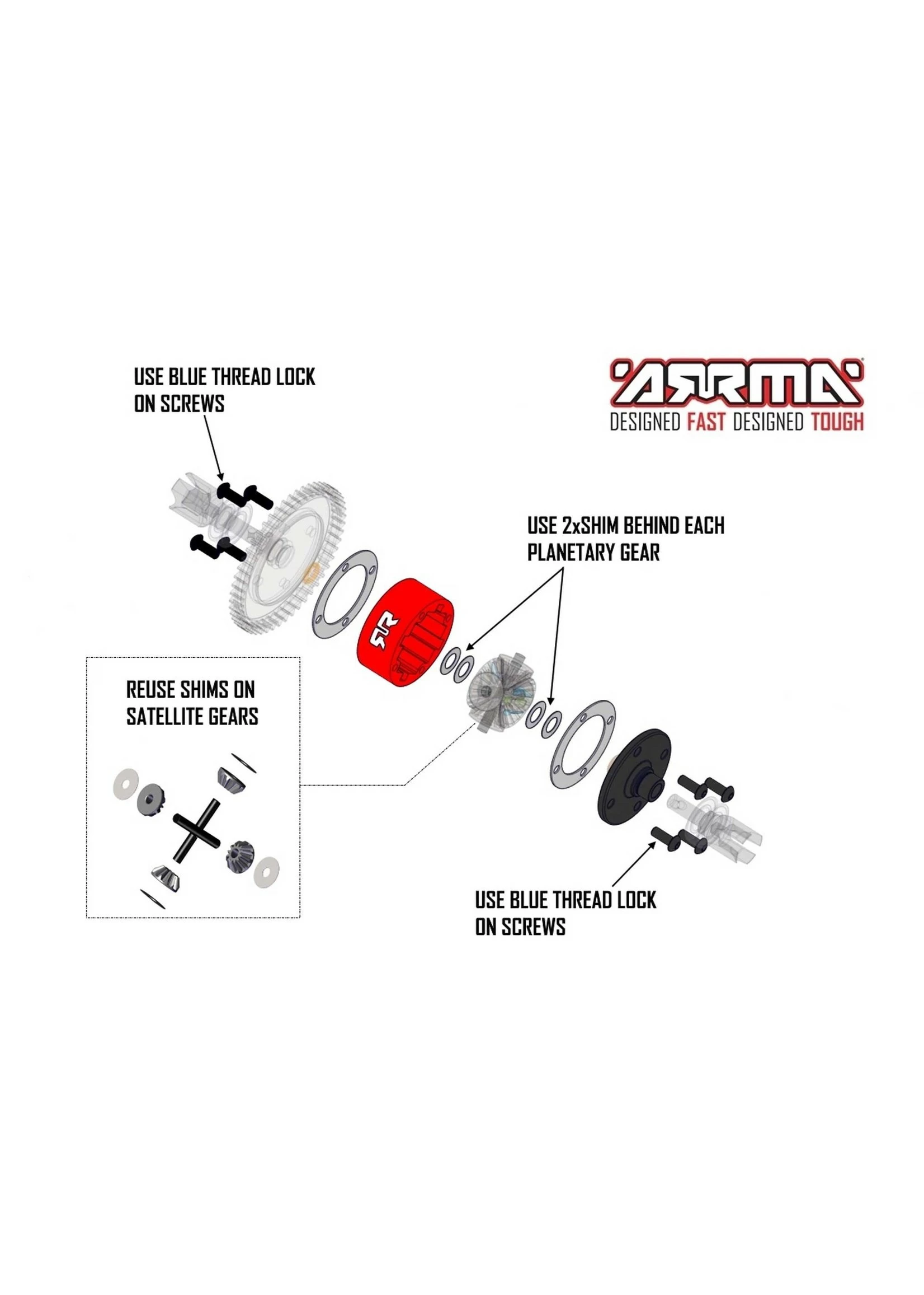 - Set includes diff gaskets, gear shims and screws required for diff rebuild