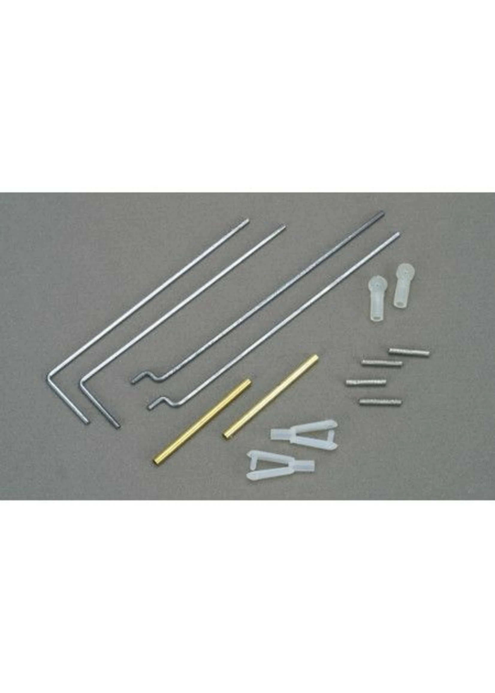 Easy to install, light and compact. Especially made for 1/2A airplanes. Features Mini Nylon Kwik-Links, Spring Threaded Couplers, Nylon Rod Ends, Brass Trubes and 1/16 diameter wire.