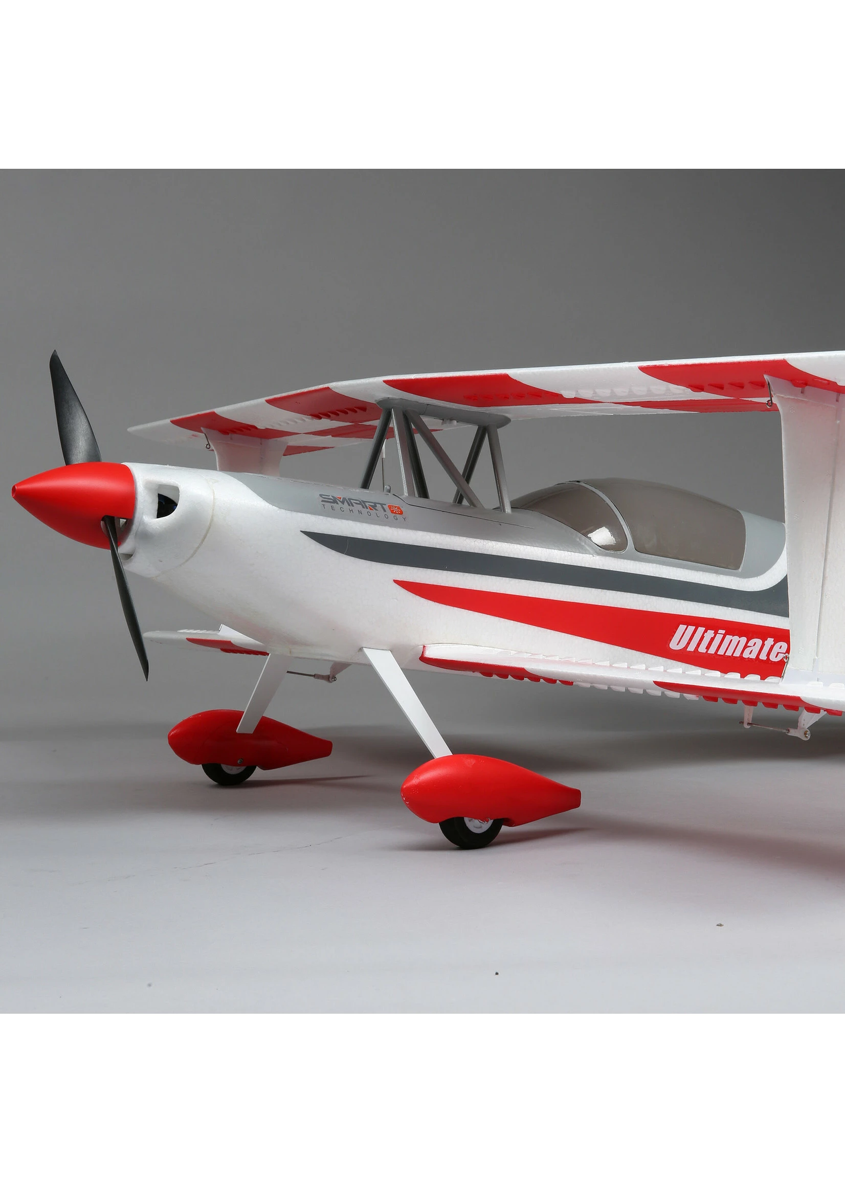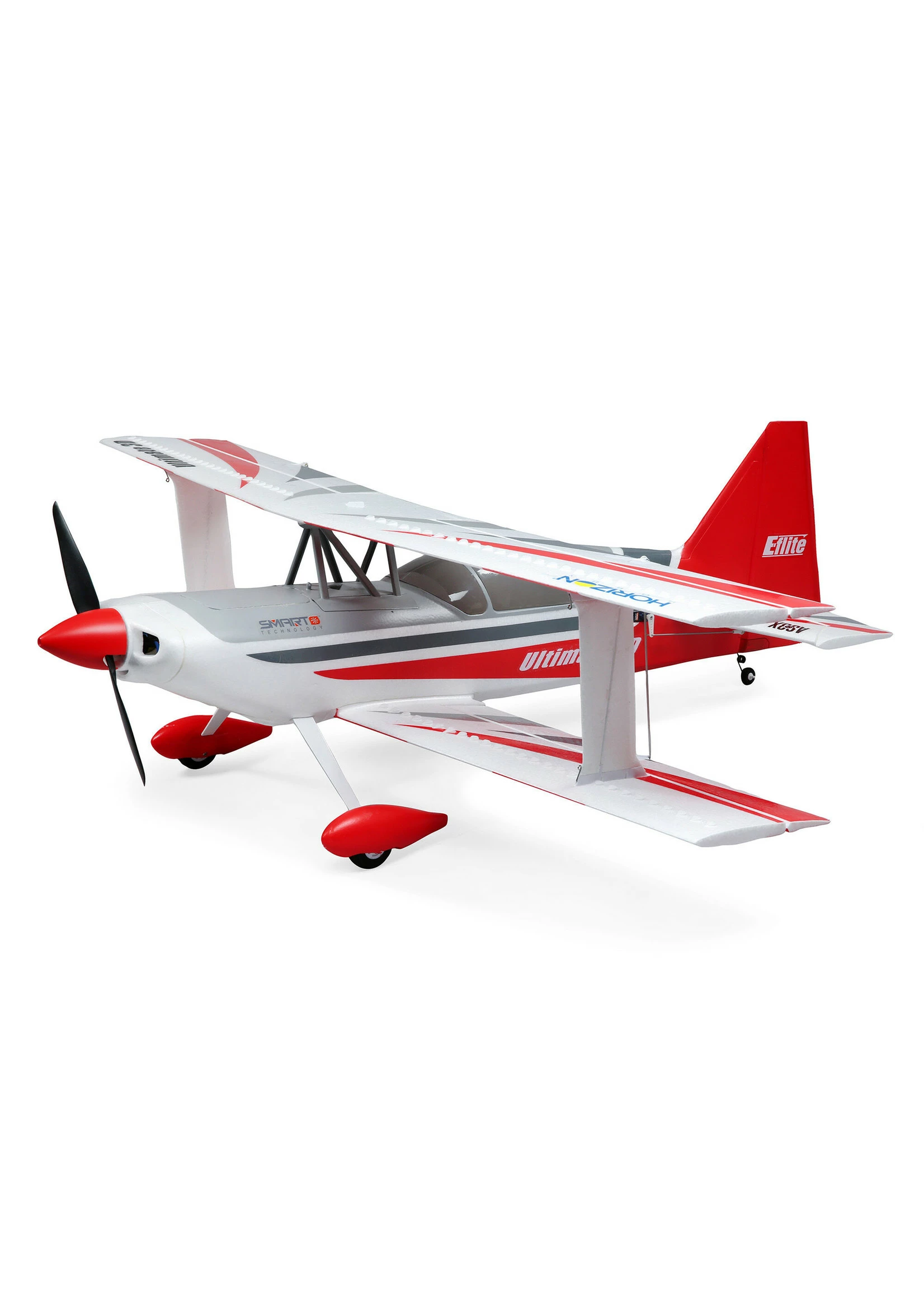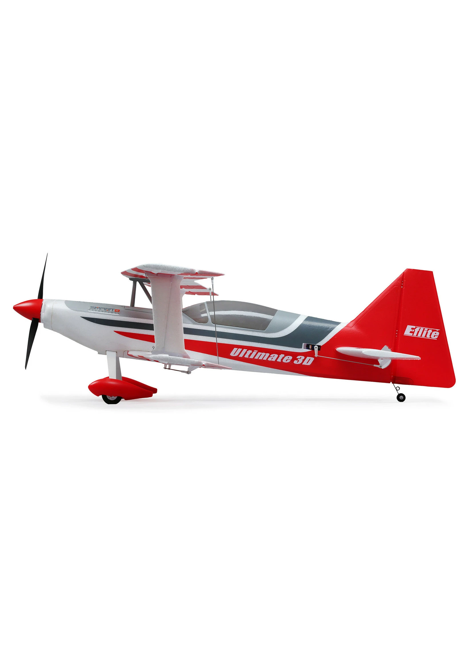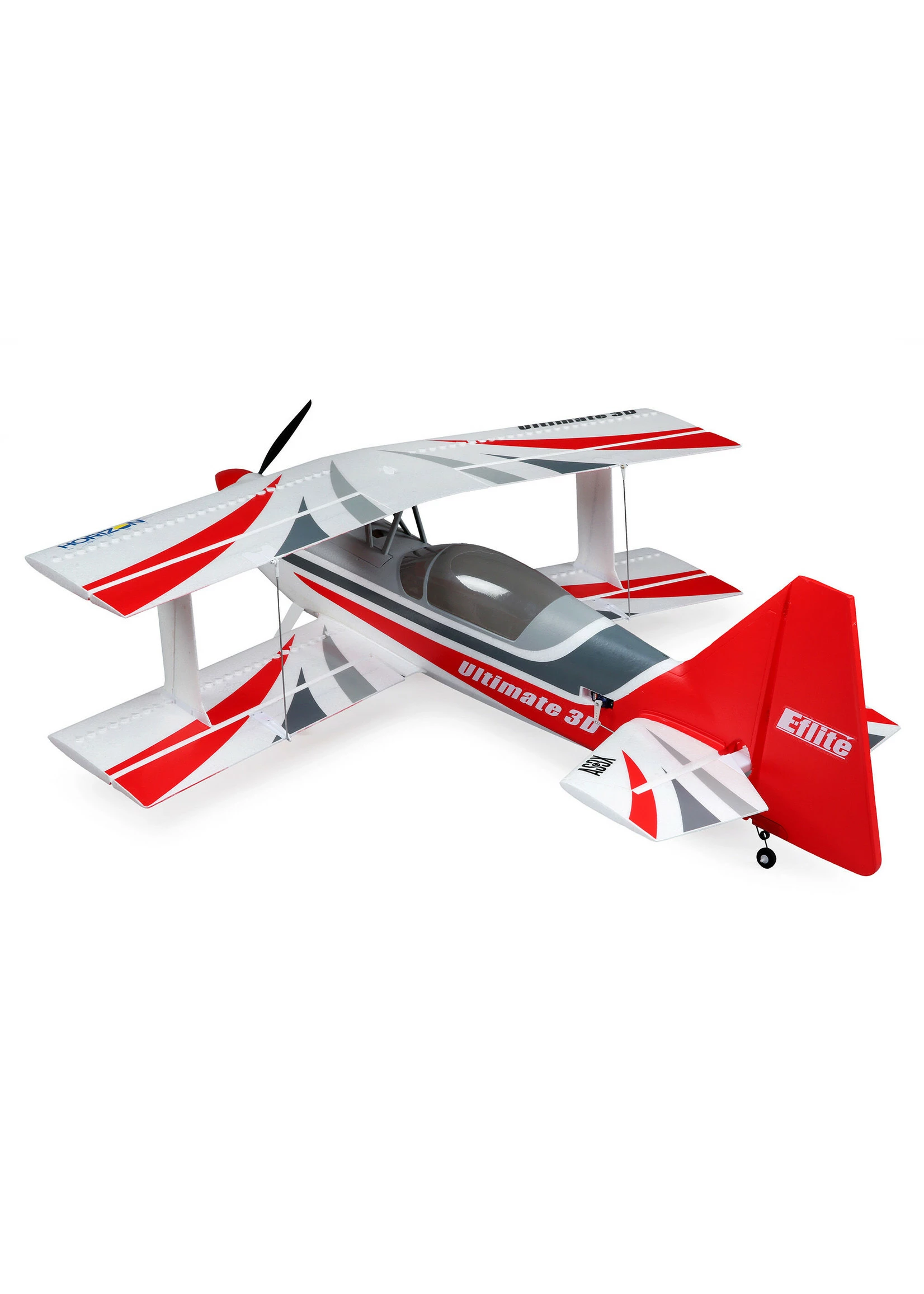 Equipped with the latest modern-day innovations and upgrades, the E-flite® Ultimate 3D biplane raises the bar for scale, sport and precision aerobatic flying — plus all-out 3D performance too! Stronger, faster metal-geared servos and ball-link equipped linkages deliver positive, precise control while the beveled hinge lines make it possible for the control surfaces to deflect to high angles for extreme 3D capabilities. The new power system, with a specially-tuned motor and prop, is compatible with 3S AND with 4S batteries to deliver extra power and unlimited vertical capability — no modifications required. It also features exclusive Smart Technology via the Spektrumâ„¢ Avianâ„¢ 60-amp Smart ESC, and the BNF® Basic version is equipped with an AR637TA receiver that offers full-range telemetry including real-time battery voltage, current, temperature and more to compatible transmitters. Plus, with 7+ channel transmitters, the optional-use motor reversing function adds special ground handling and other unique capabilities. The composite-reinforced, hollow-core EPO construction provides a lightweight but durable airframe that’s factory-finished in a striking, ready-to-admire trim scheme. Best of all you can have the Ultimate 3D flight-ready in less time than it takes to charge a battery because no glue is required for final assembly, and installation/removal of the wings is tool-free for easy storage and transport. This makes it the easiest and best choice for almost any pilot looking for their first or next biplane!
