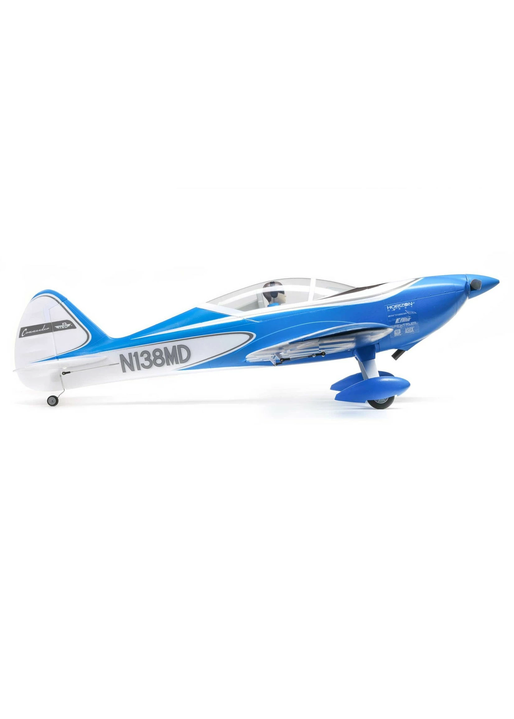 David Payne and Mirco Pecorari drew from many full-scale and model aviation influences when designing the Commander mPd® 1.4m sport airplane. They wanted it to stand out from the crowd while having the pilot-friendly flight characteristics of traditional sport planes. This updated and upgraded version is all that and more! Easy to take off, fly, and land, it’s the perfect “next step” after a trainer. In the hands of experienced pilots, it’s also capable of higher speeds and high-energy aerobatics. The 3S and 4S compatible brushless power system, combined with a light wing loading plus factory-installed metal-geared servos and flaps, gives the Commander mPd 1.4m a wide flight envelope. It’s smooth and predictable, with power to spare for performing rolling circles, knife-edge flight, and beyond. While you fly, the exclusive Spektrumâ„¢ Avianâ„¢ Smart Lite ESC can provide a variety of real-time power system related telemetry data including motor RPM, current, battery voltage and more – with Smart and non-Smart batteries – via compatible receivers (including the Bind-N-Fly® Basic version’s AR631) and Spektrum AirWareâ„¢ equipped transmitters. The Bind-N-Fly® Basic version also offers the handling benefits of AS3X® and optional-use SAFE® Select technologies. An innovative Hands-Free Servo Connection System automatically plugs in the aileron and flap servo connectors when you install the two-piece wing with just 4 bolts. The Commander mPd 1.4m arrives factory-finished in an exclusive Aircraft Studio Design trim scheme and requires no glue for assembly. That means you can have it ready to fly in less time than it takes to charge a battery!
