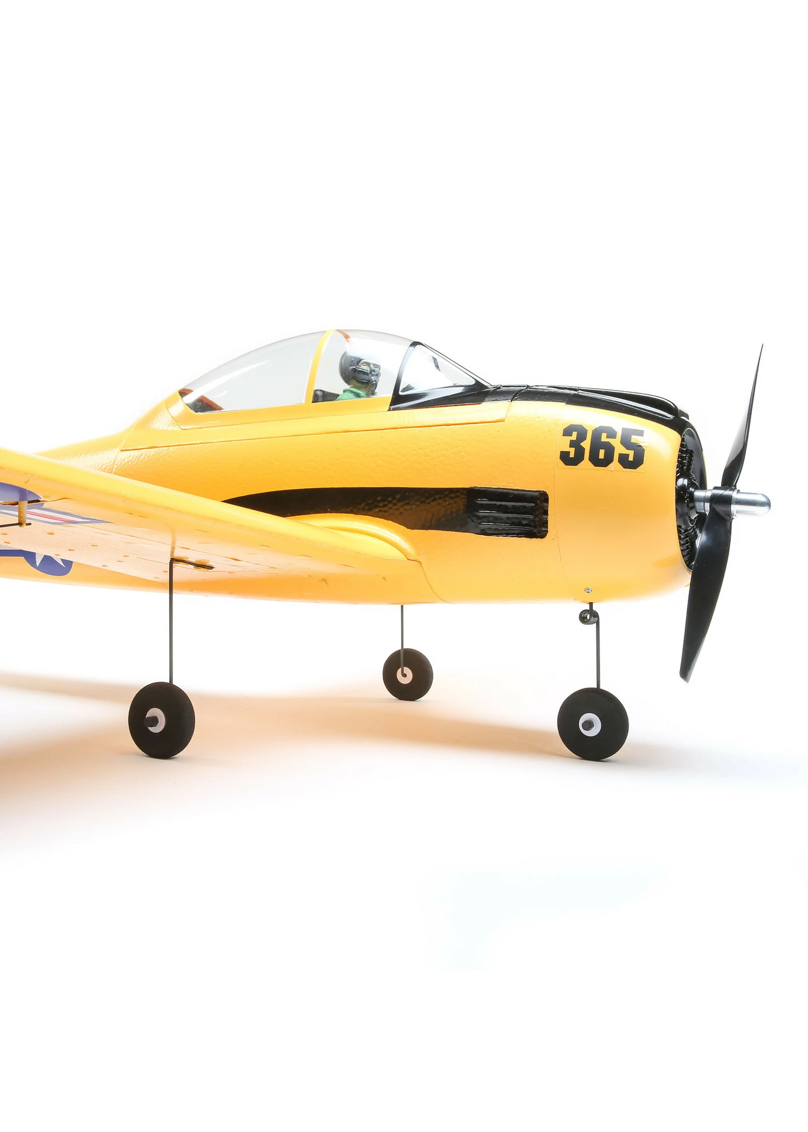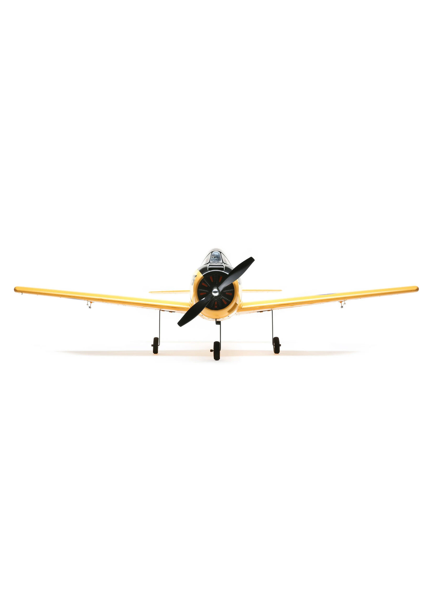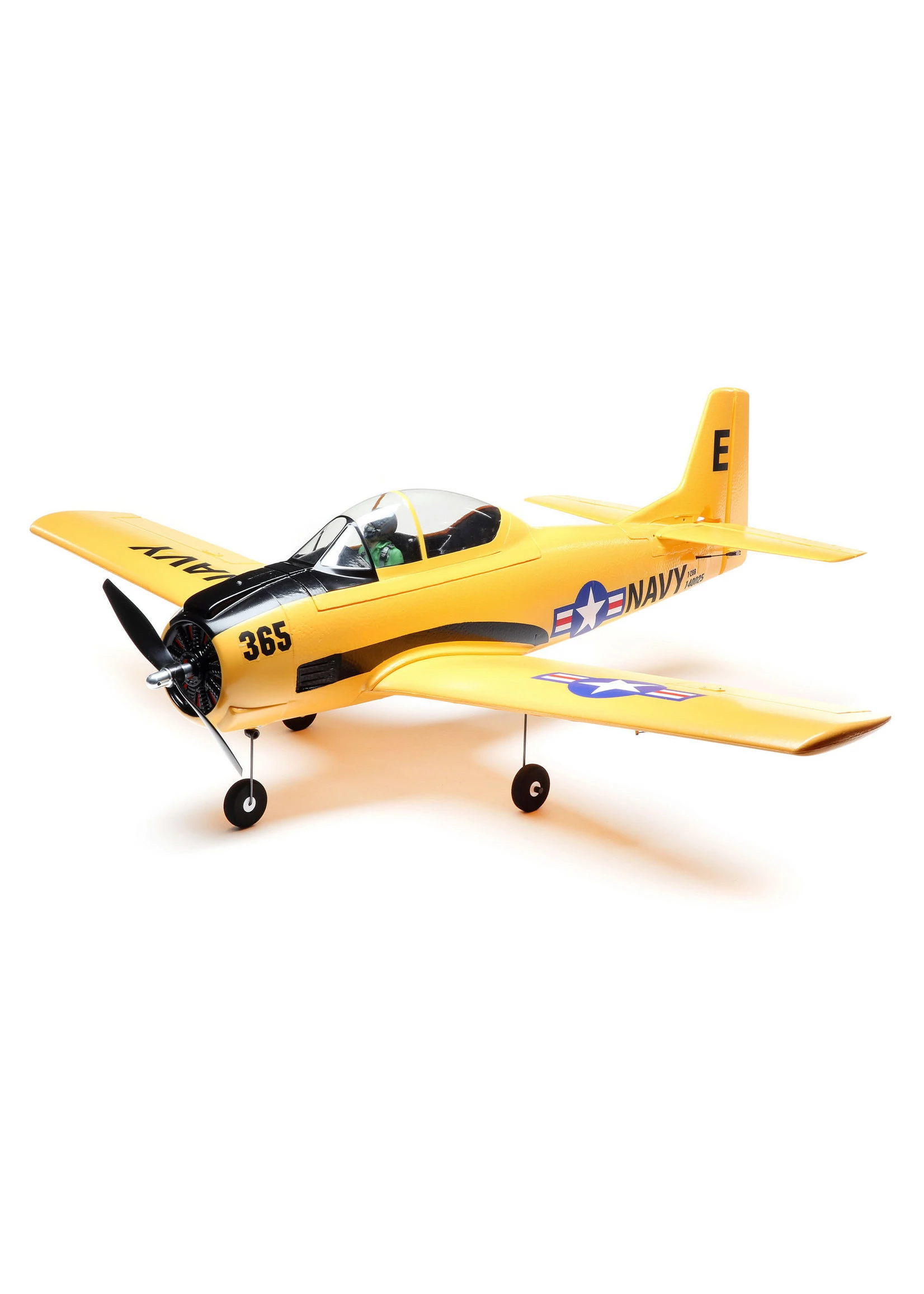 Updated and upgraded, including a fully-painted, high-visibility trim scheme, the E-flite® T-28 Trojan 1.1m reaffirms its status as an excellent “next step” model for low-time pilots who have mastered a trainer and are looking for their first low-wing, sport or warbird model — while expanding its performance for experienced pilots with higher speed and higher energy aerobatic capabilities! With a common 3S 1800–2200mAh LiPo battery, the brushless power system featuring a specially-tuned motor delivers plenty of thrust and speed for low-time to intermediate pilots. Or, install a 4S battery for more speed and unlimited vertical performance without modifications or upgrades! Four servos and linkages are factory-installed for full aerobatic capability to perform loops, rolls, knife-edge, inverted flying, and more. The composite-reinforced EPO airframe includes stronger parts to handle the higher speeds and additional aerobatic capabilities, and for improved durability overall.