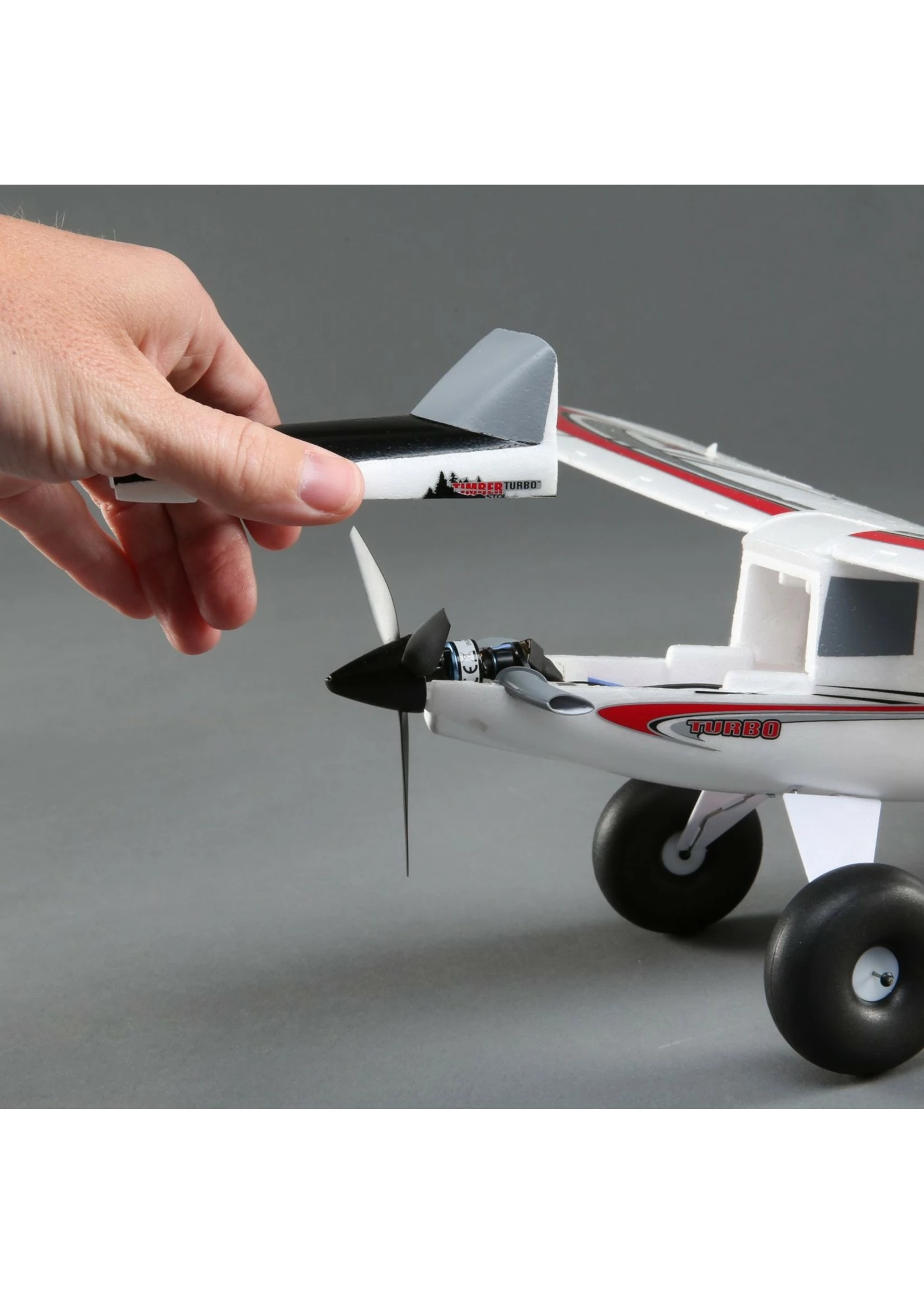 Scaled down from the legendary Timber® 1.5m, the E-flite® UMXâ„¢ Timber was the iconic ultra micro model best-equipped for exciting STOL (Short Take Off and Landing) adventures and beyond…until now. The UMX Turbo Timber updates the original design with a modern turboprop-styled nose and 3-blade propeller, plus a higher-power 3400Kv brushless motor. When using the same 2S 280mAh batteries, this Turbo version provides even better STOL performance with shorter takeoffs and faster climbs. You’ll also enjoy extreme aerobatic capabilities and have the power to hover, then climb out vertically. In the hands of experienced pilots, the UMX Turbo Timber can be flown in more places — even off of water with the optional floats (sold separately) — and in smaller spaces. Plus its high-wing configuration and exclusive optional-use SAFE® Select technology provide plenty of stability to make the UMX Turbo Timber a great choice if you’ve mastered flying at least one model before. This makes it a model that pretty much every pilot, from low-time to long-time experienced alike, should own because everyone will enjoy flying it!