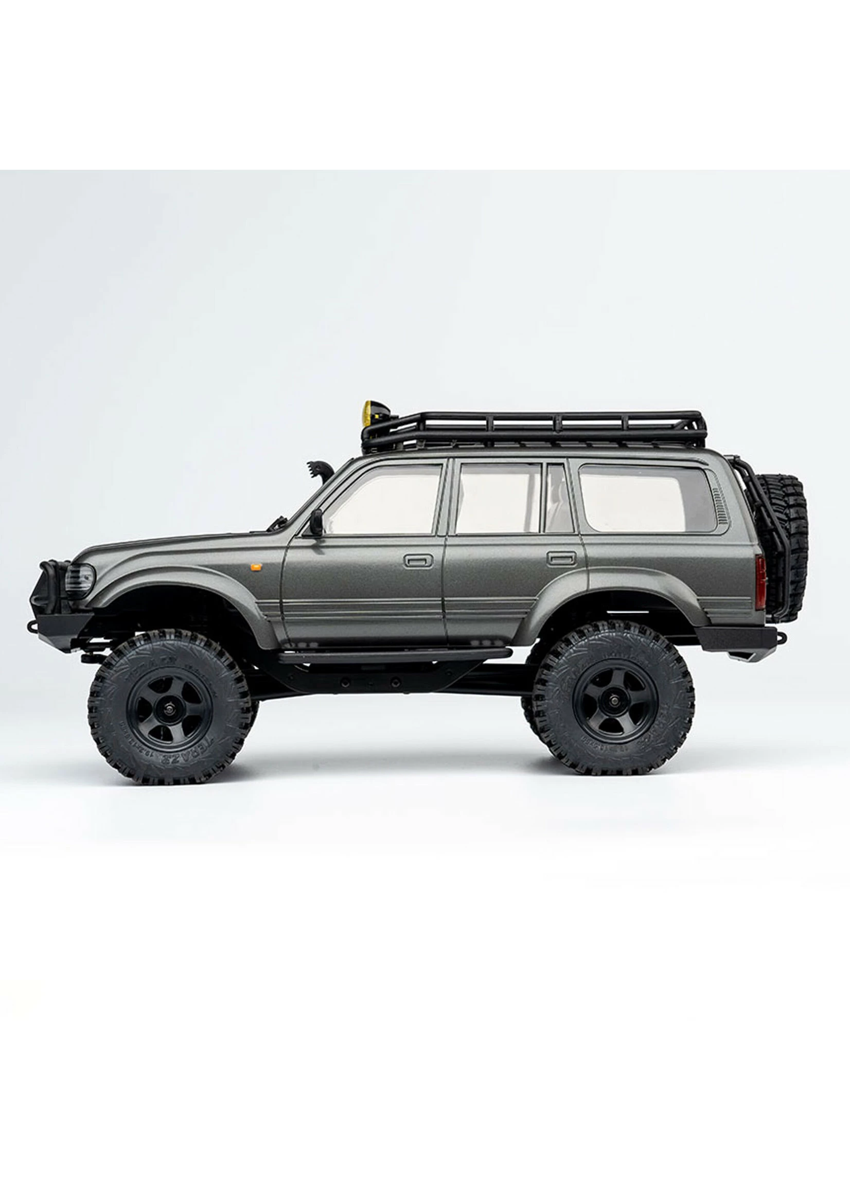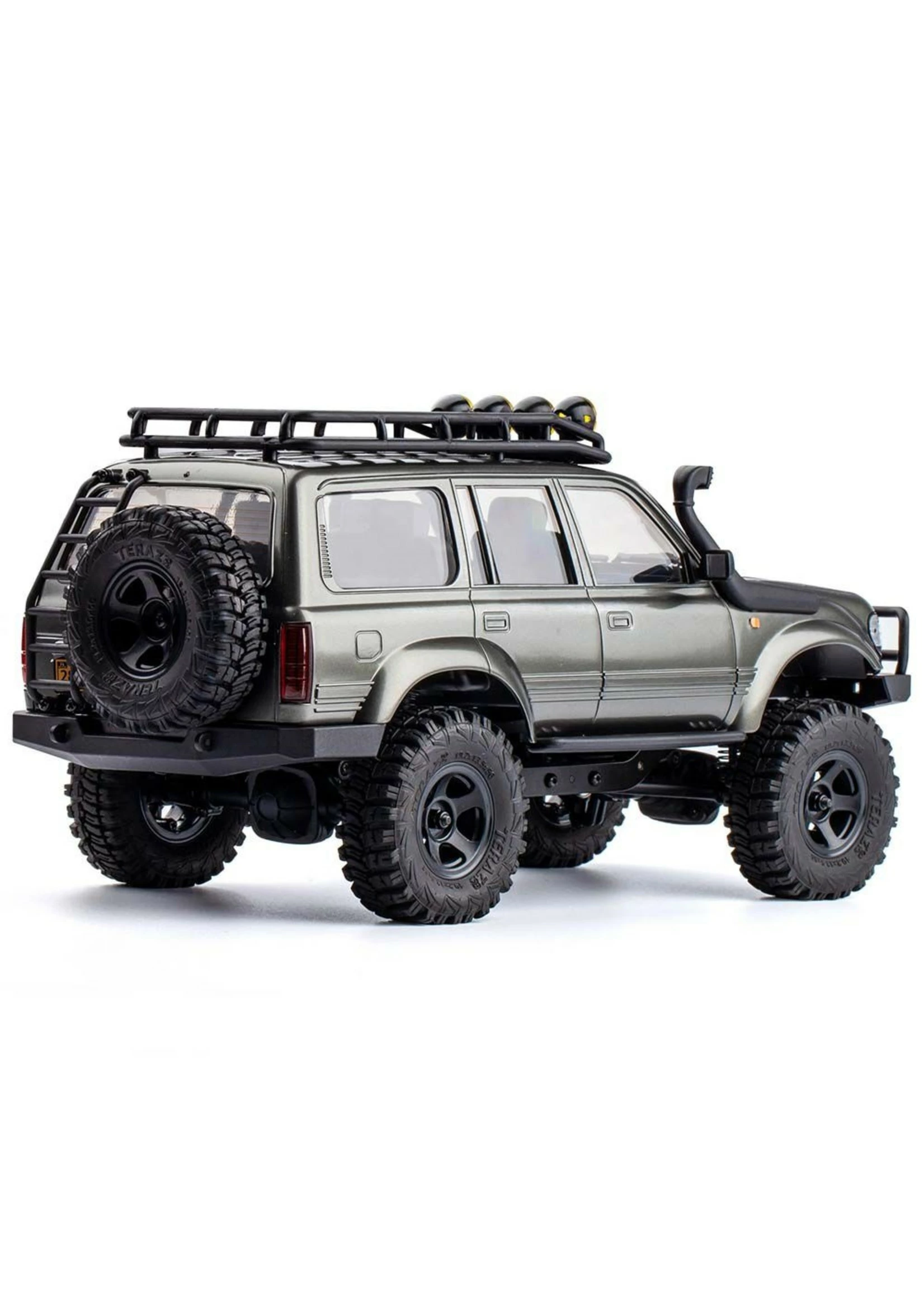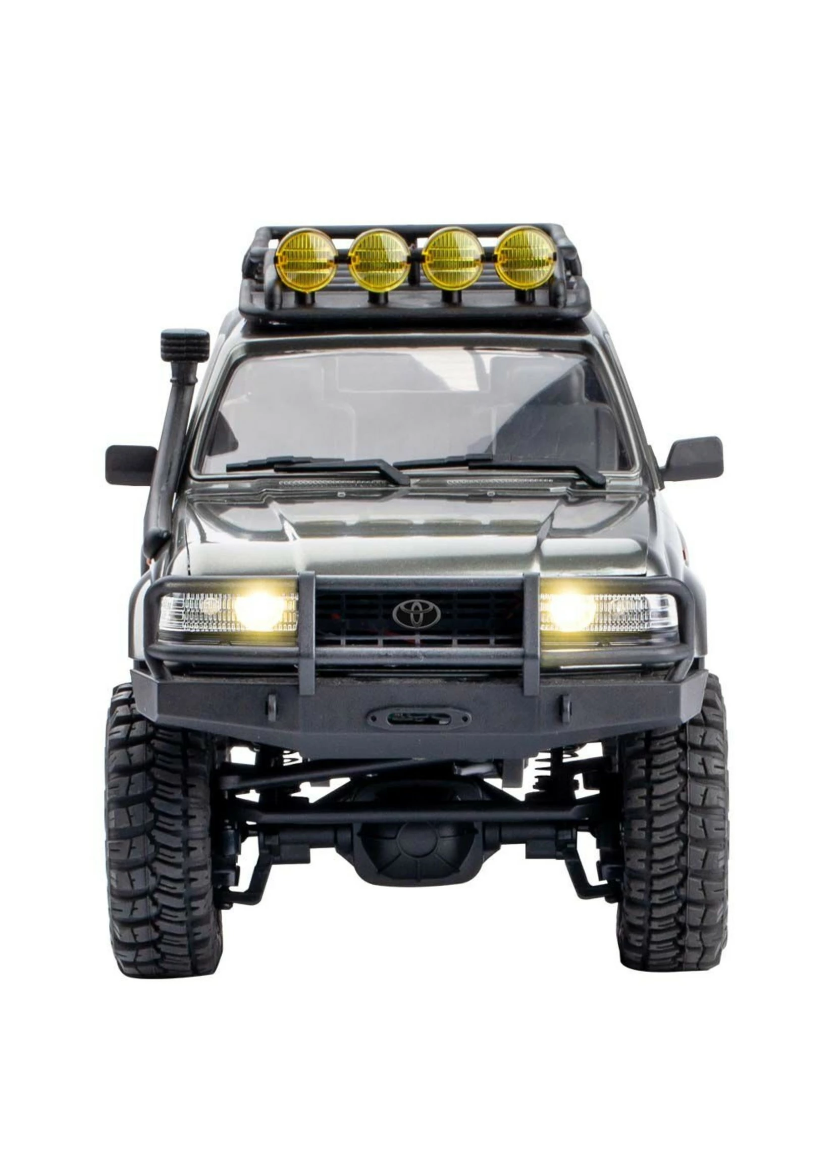 Looking for a mini scaler that’s dependable, detailed and confident on any terrain? Introducing the 1:18 scale Toyota Land Cruiser LC80 RTR! From the period-correct lights, detailed interior, functioning indicators and the vents on the vehicle body, the Land Cruiser was designed to static-model standards. A feature-packed trail-proven chassis drives the Land Cruiser. Aluminum rails provide a rigid platform while a multilink geometry with panhard bar chassis design allows for maximum axle articulation.
