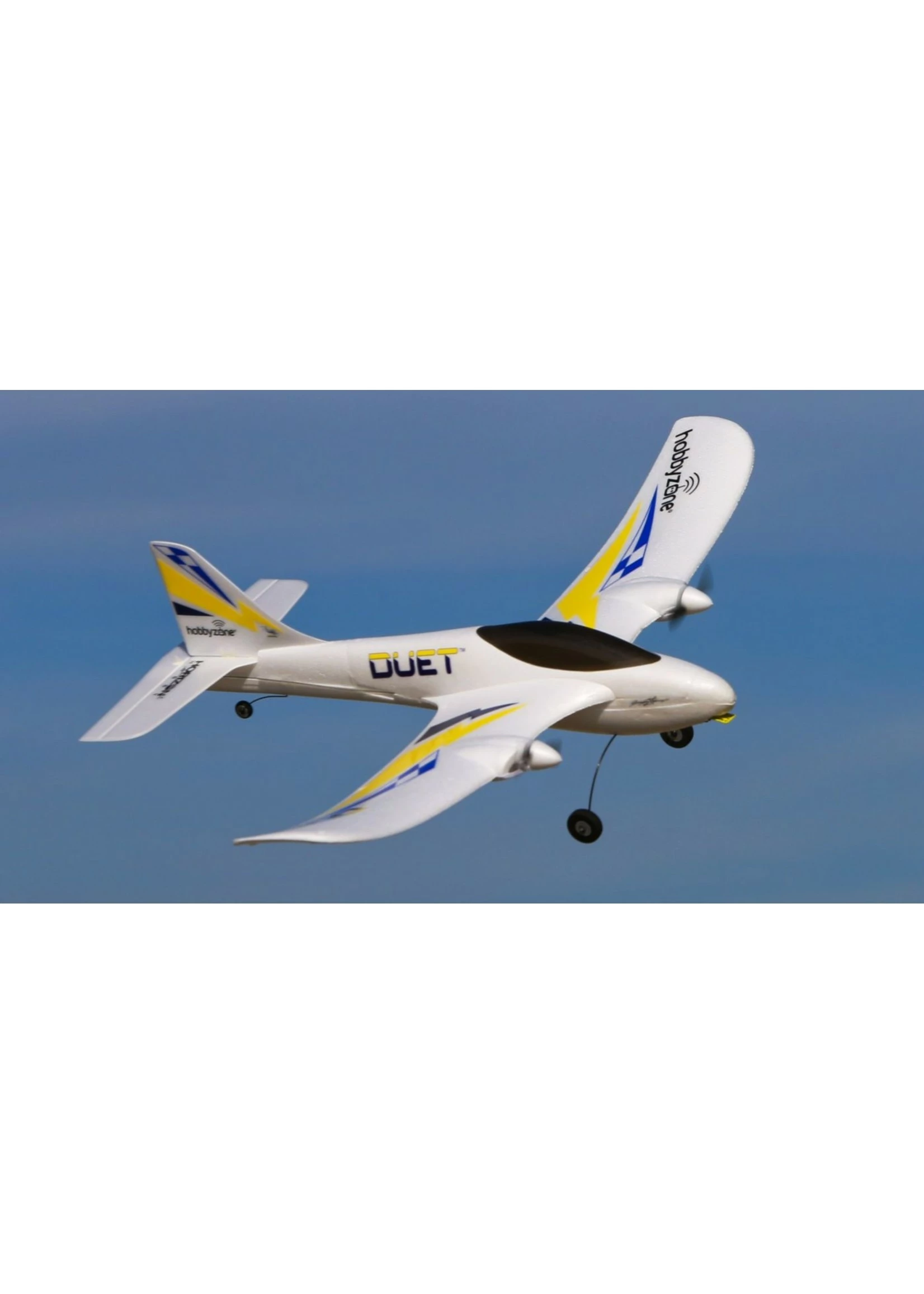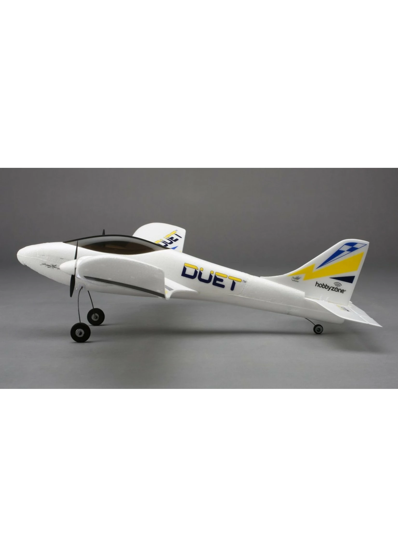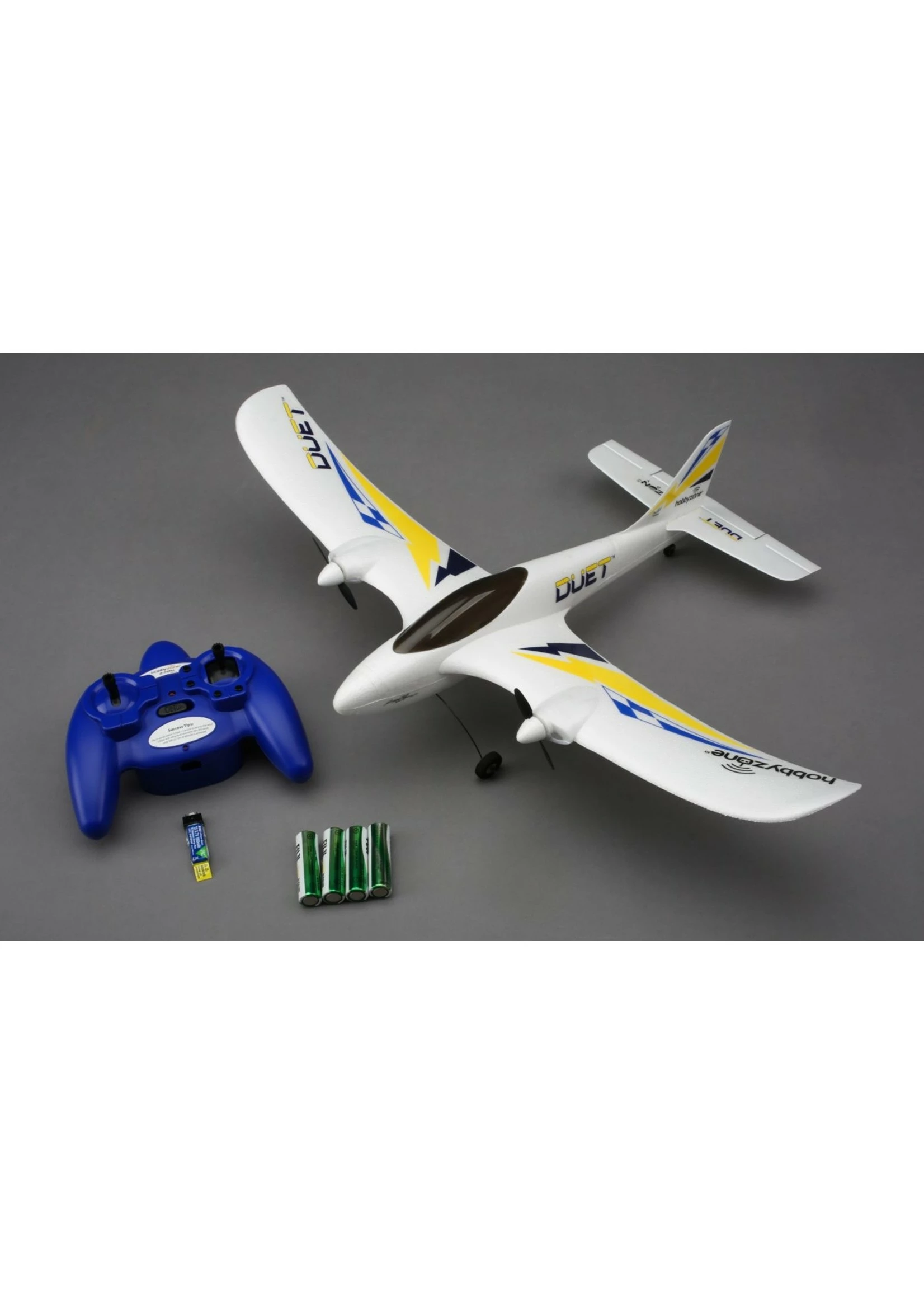 Teach yourself to fly with the Duet RTF trainer! This small RC aircraft turns your dreams of flight into a reality. With everything included in one box, the Duet leaves nothing standing in the way of you learning to fly.