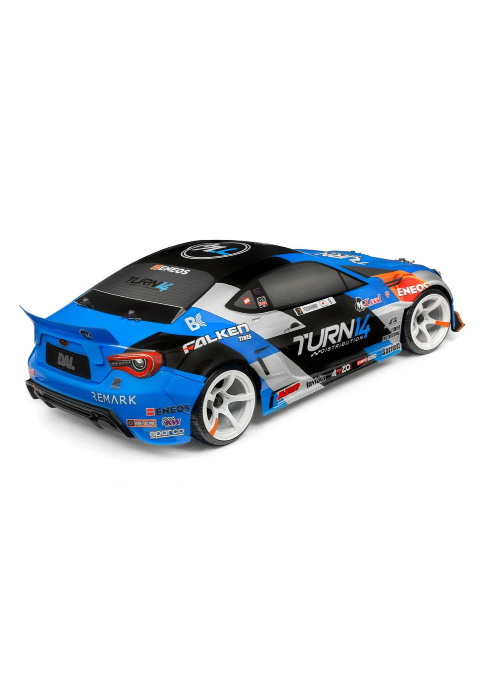 The Subaru BRZ body features Dai’s official Turn 14 Distribution race livery in its unique blue, black and silver finish – another amazing replica drift car to add to our ever-growing athlete line-up! The Subaru BRZ is a rare sight on the drifting scene, so right out of the box this beauty will be the center of attention! Under the hood, this 1/10th scale Subaru is built on the fan favourite HPI Racing Touring Car chassis, the RS4 Sport 3. With full time shaft driven 4WD, a fully sealed drivetrain, waterproof 2.4 GHz electronics/radio gear, fully independent double wishbone suspension and adjustable oil filled shocks, you’ll be ready to shred in any condition.