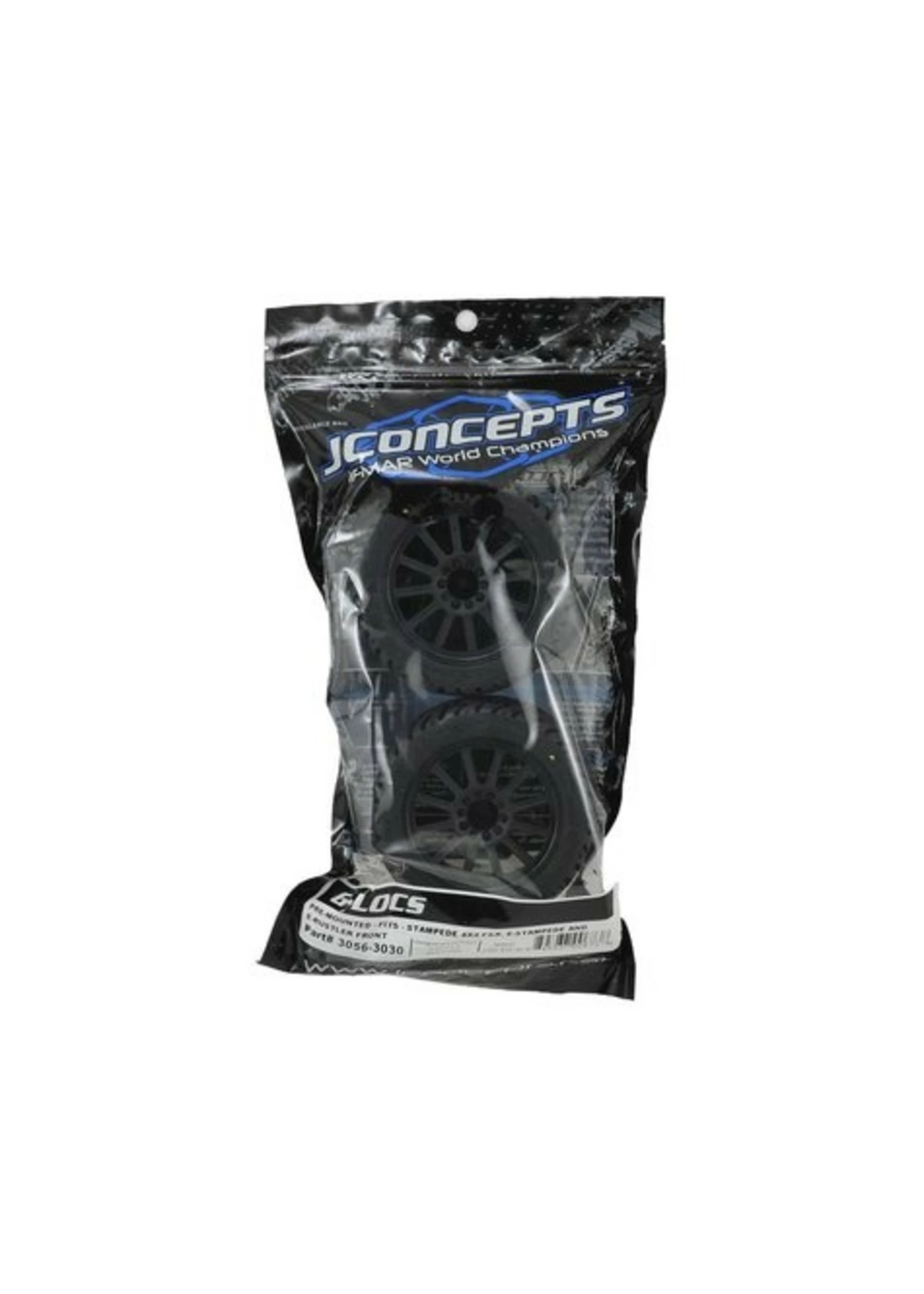 This is a pack of two JConcepts Pre-Mounted G-Locs 2.8″ Tires in yellow compound, pre-mounted on Rulux Electric Front Wheels. These pre-mounts can be used on the front and rear of the Traxxas Stampede 4×4, as well as the front of the electric 2WD Stampede, and 2WD Rustler trucks. Plus, they also fit on the Slash 4×4 when equipped with the JConcepts Scalpel body and conversion kit. The 2.8″ G-Locs provide elements that combine light-weight, performance and durability with the inclusion of Profiled closed cell inserts. The highly successful insert material made it’s fame on the 1/8th off-road racing circuit and now into the JConcepts 2.8″ line. Feel at ease while doing high-speed runs with the durability and performance of the closed cell material which provides durability and feel when others run short.