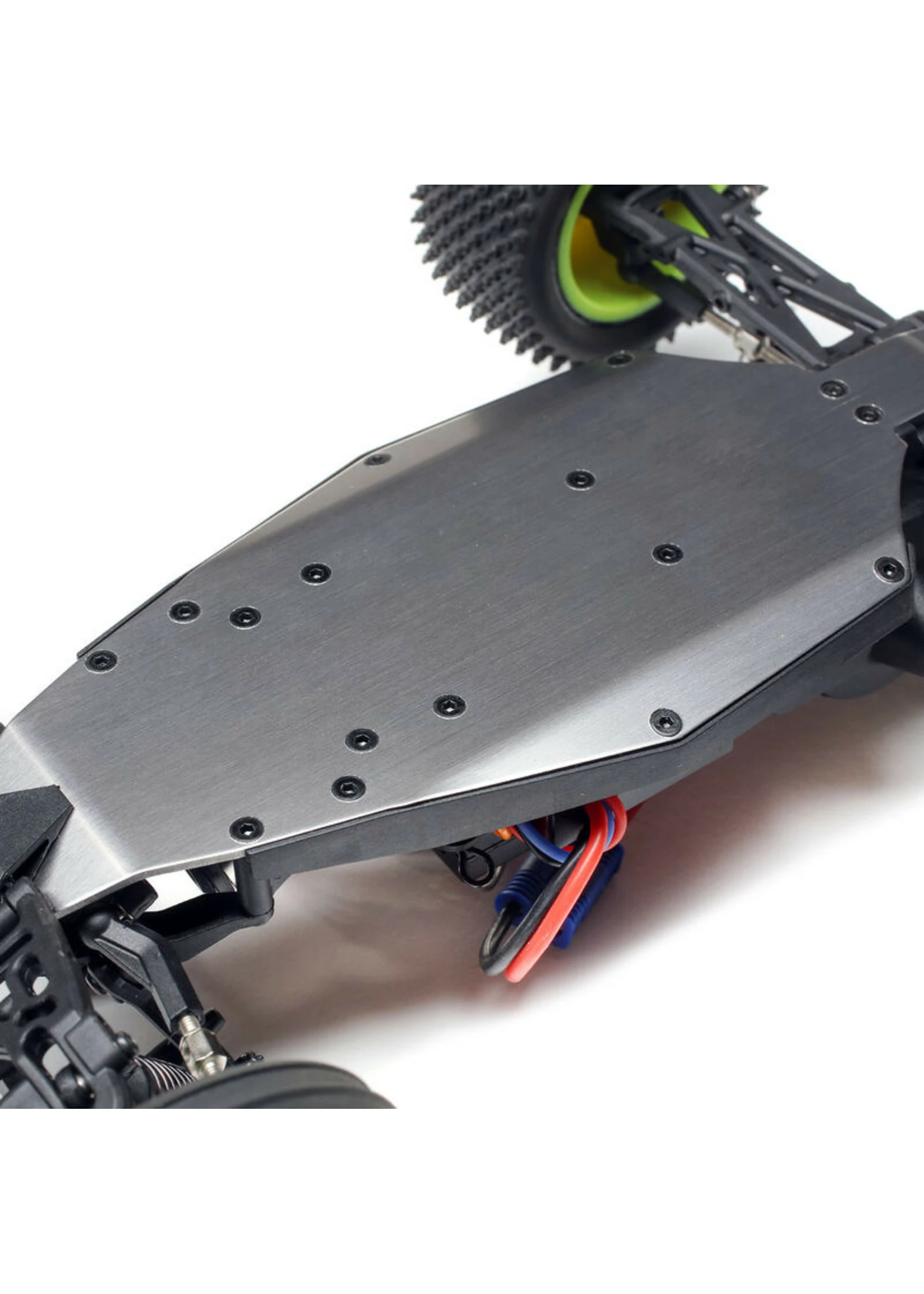 The Mini-T 2.0 Brushless has been designed with a 1.5mm thick 6061-T6 Aluminum chassis plate. The aluminum chassis provides more strength and durability while vastly improving performance.