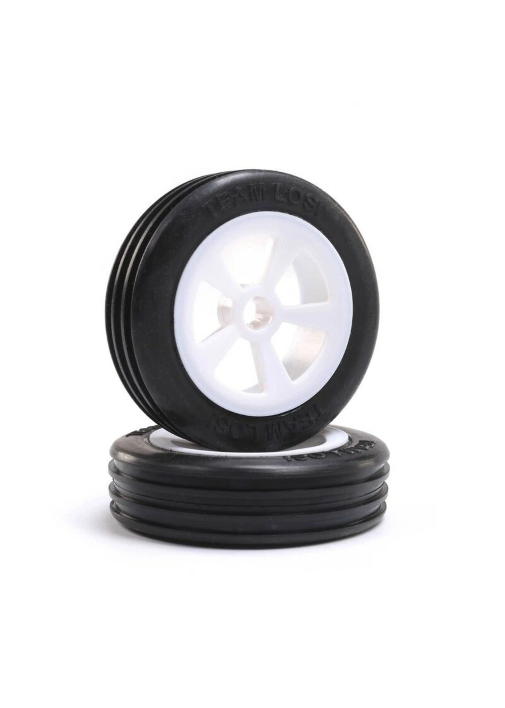 LOS41021 – Rib Front Tire, Mounted, White (2): Mini JRX2