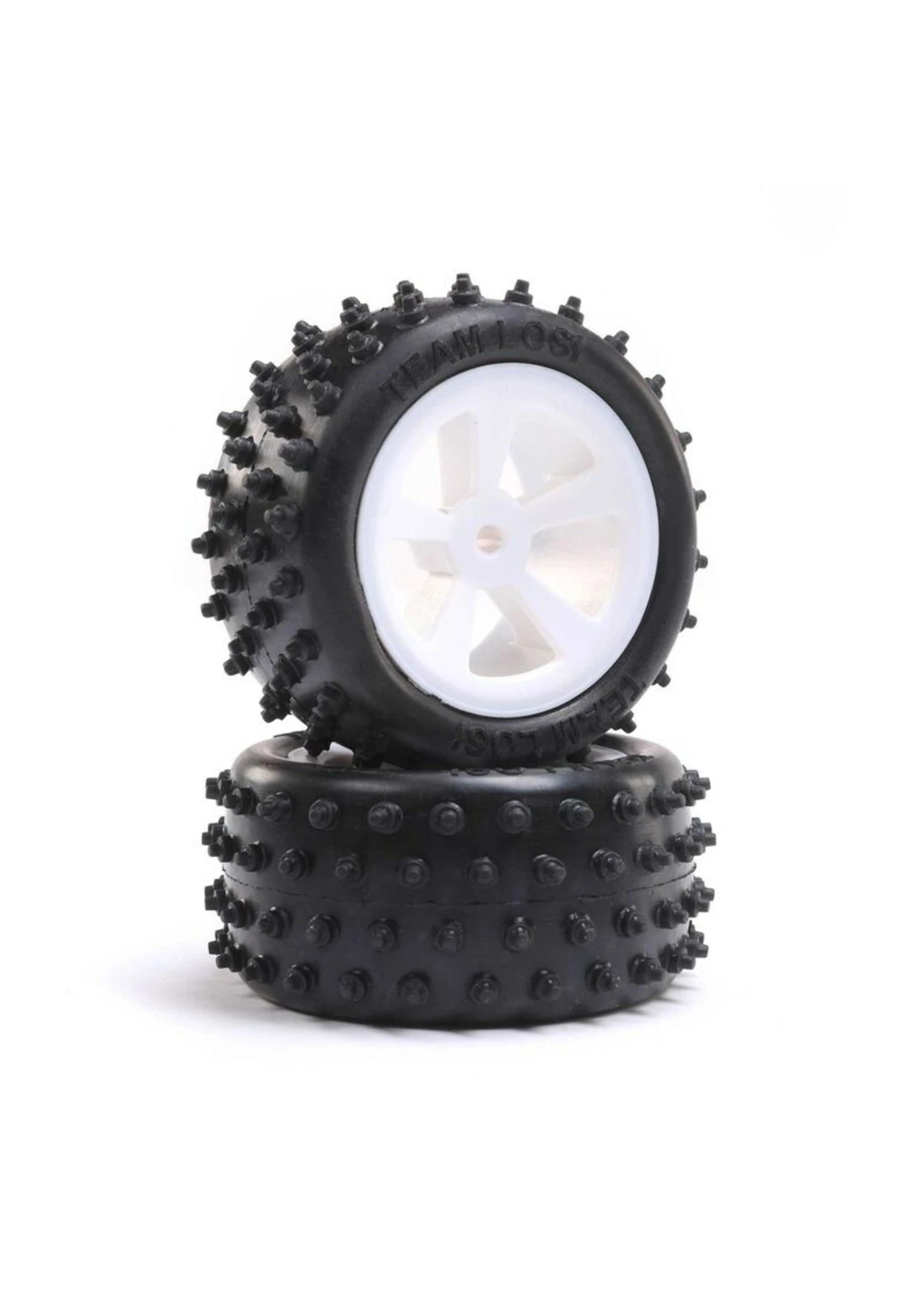 LOS41024 – 4 Row Rear Tires, Mounted, White (2): Mini JRX2