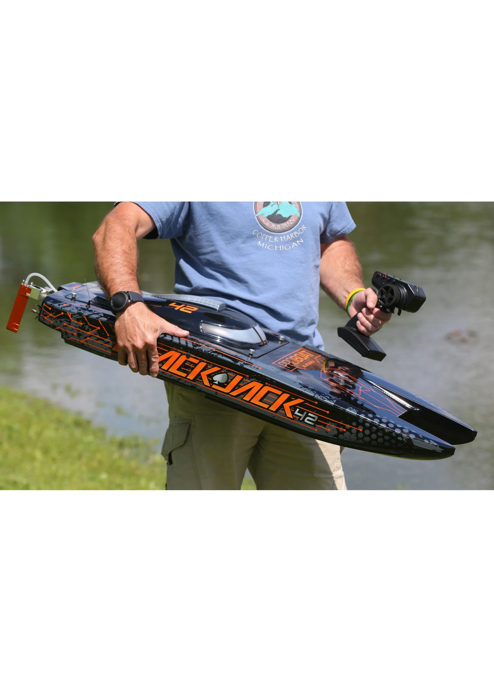 PRB08043T1 – Blackjack 42″ 8S Brushless Catamaran RTR – Black/Orange
