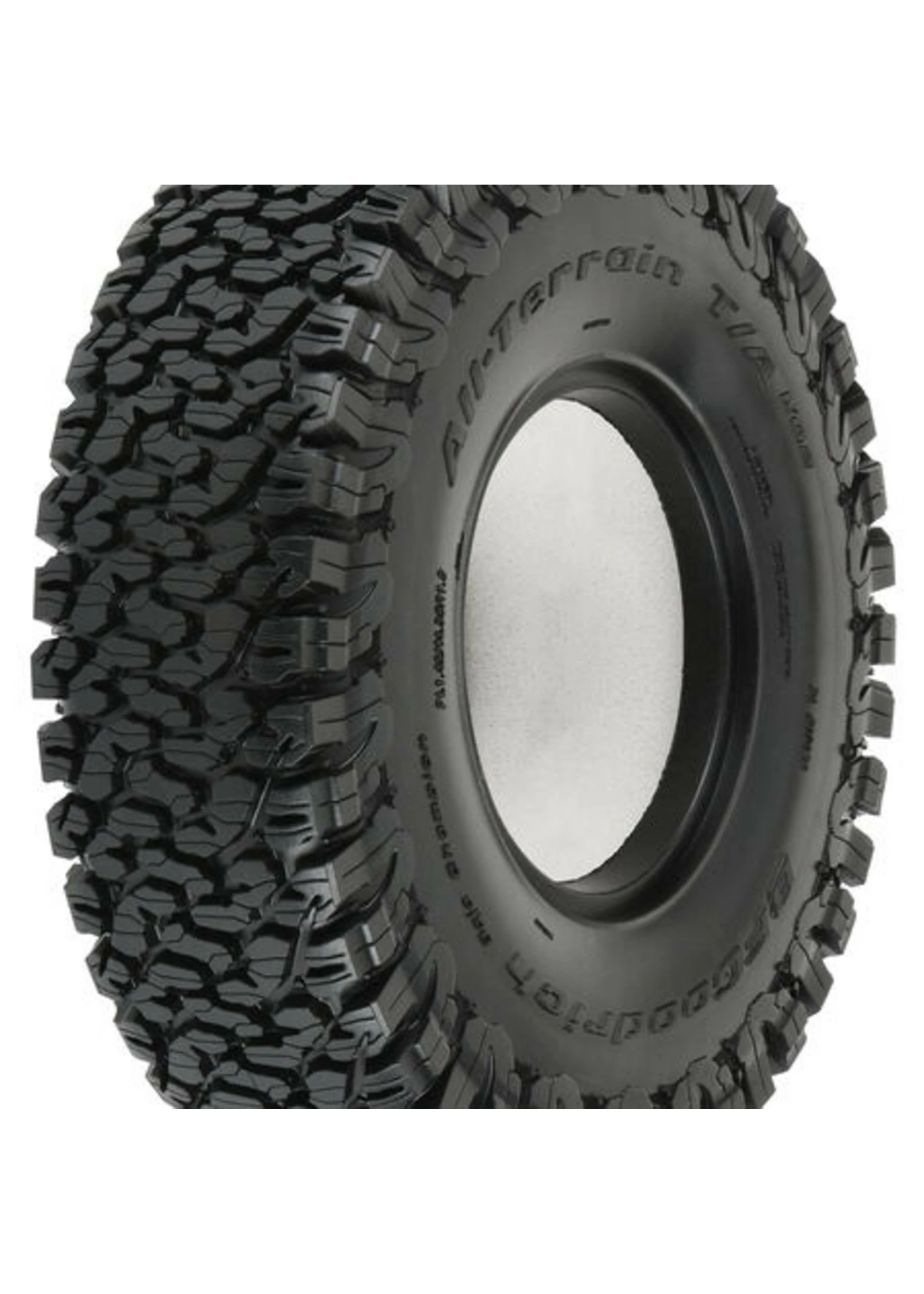 Details from the full-size race All-Terrain tire have been recreated to give your truck the ultimate in scale looks and multi-surface performance. Known for extreme off-road traction and awesome street performance in the full scale world. The BFGoodrich® All-Terrain KO2 tire features an iconic layout of densely packed tread blocks with a large number of tread sipes that will give your rig improved traction on any terrain! Pro-Line engineers decided that the KO2 tire needed to be 4.35″ tall x 1.42″ wide for the perfect balance of Scale looks and performance! The all-new BFGoodrich® All-Terrain KO2 1.9″ tires from Pro-Line are a must have. Get yours today!