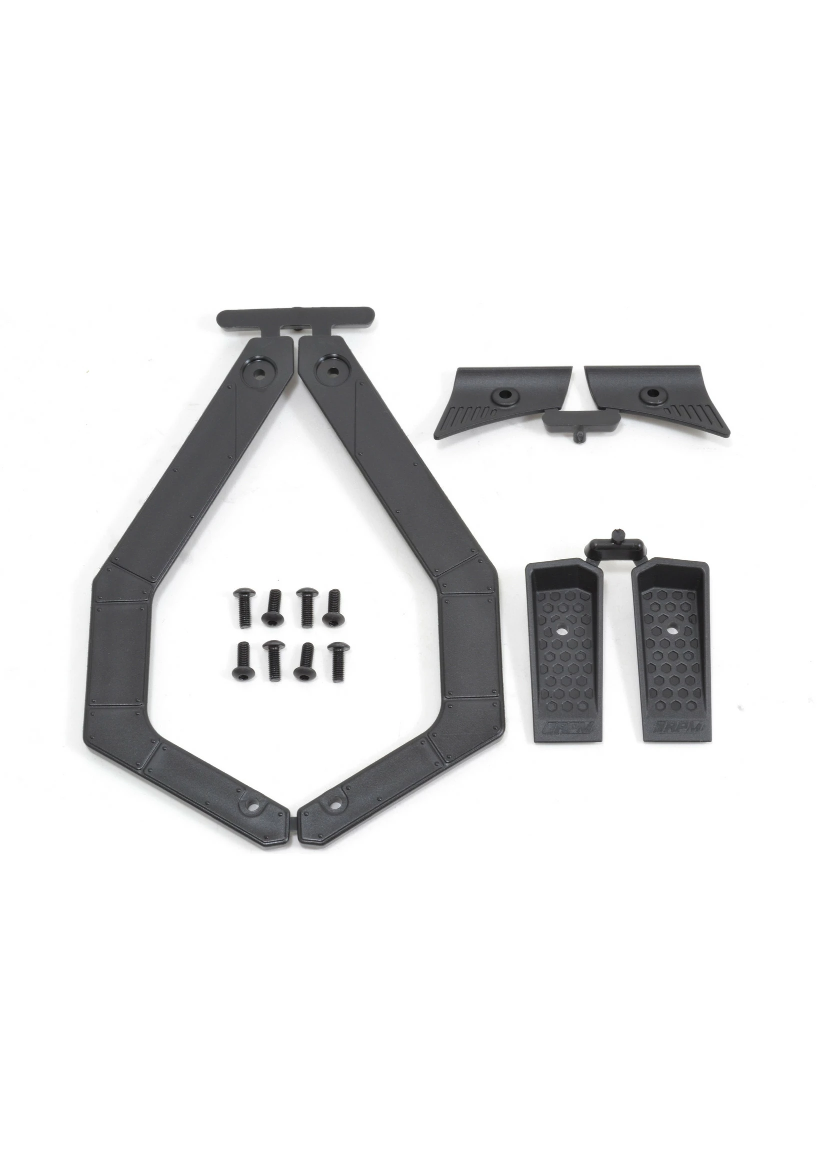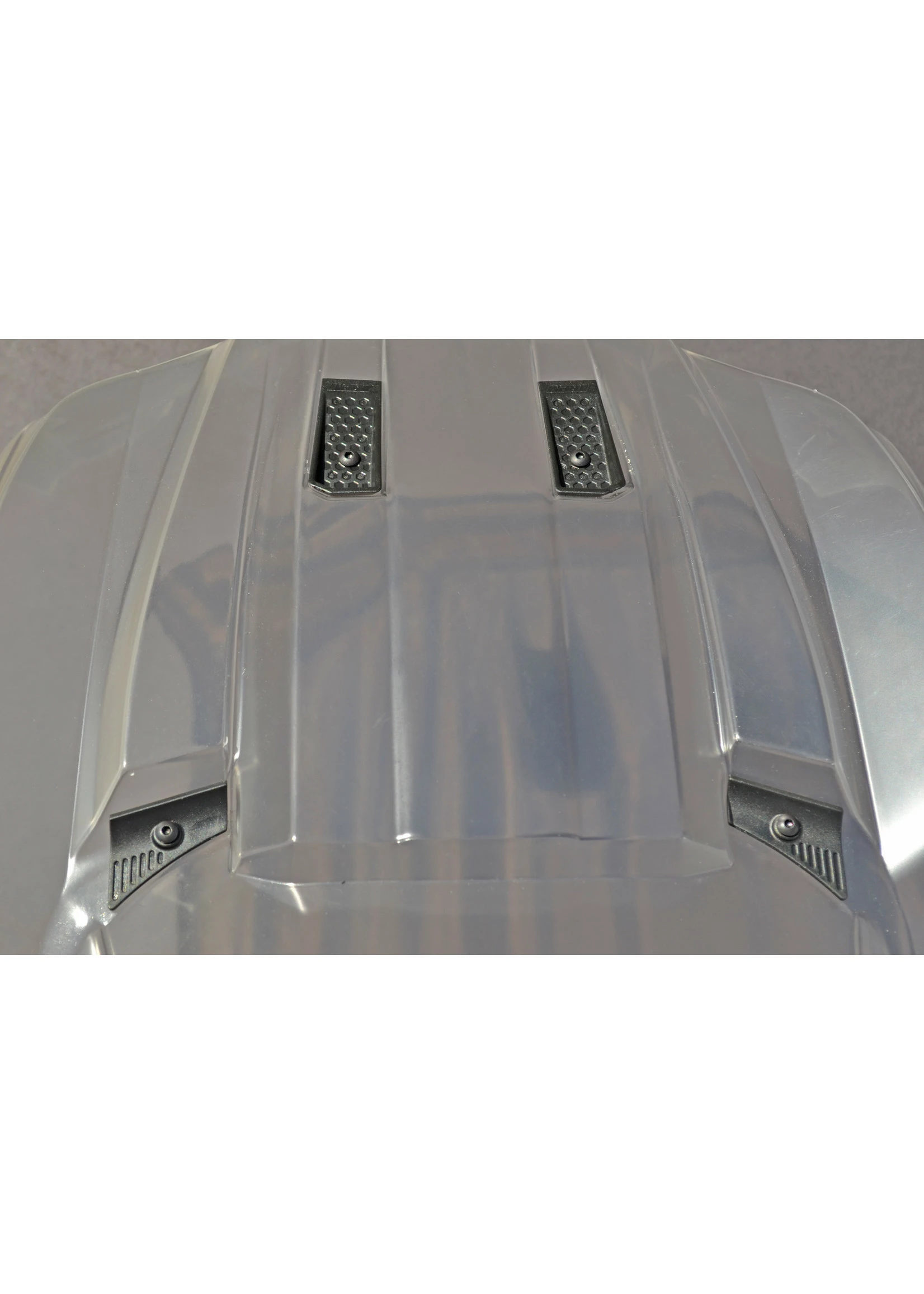 RPM Body Savers for the X-Maxx are a simple, yet clever solution to solve that problem. Out front, they look like molded hood vents (2) and A/C vents (2) while in the rear, they look like exposed sections of riveted metal (2). It’s a perfect way to camouflage their intended purpose and yet still keep the body firmly attached.
