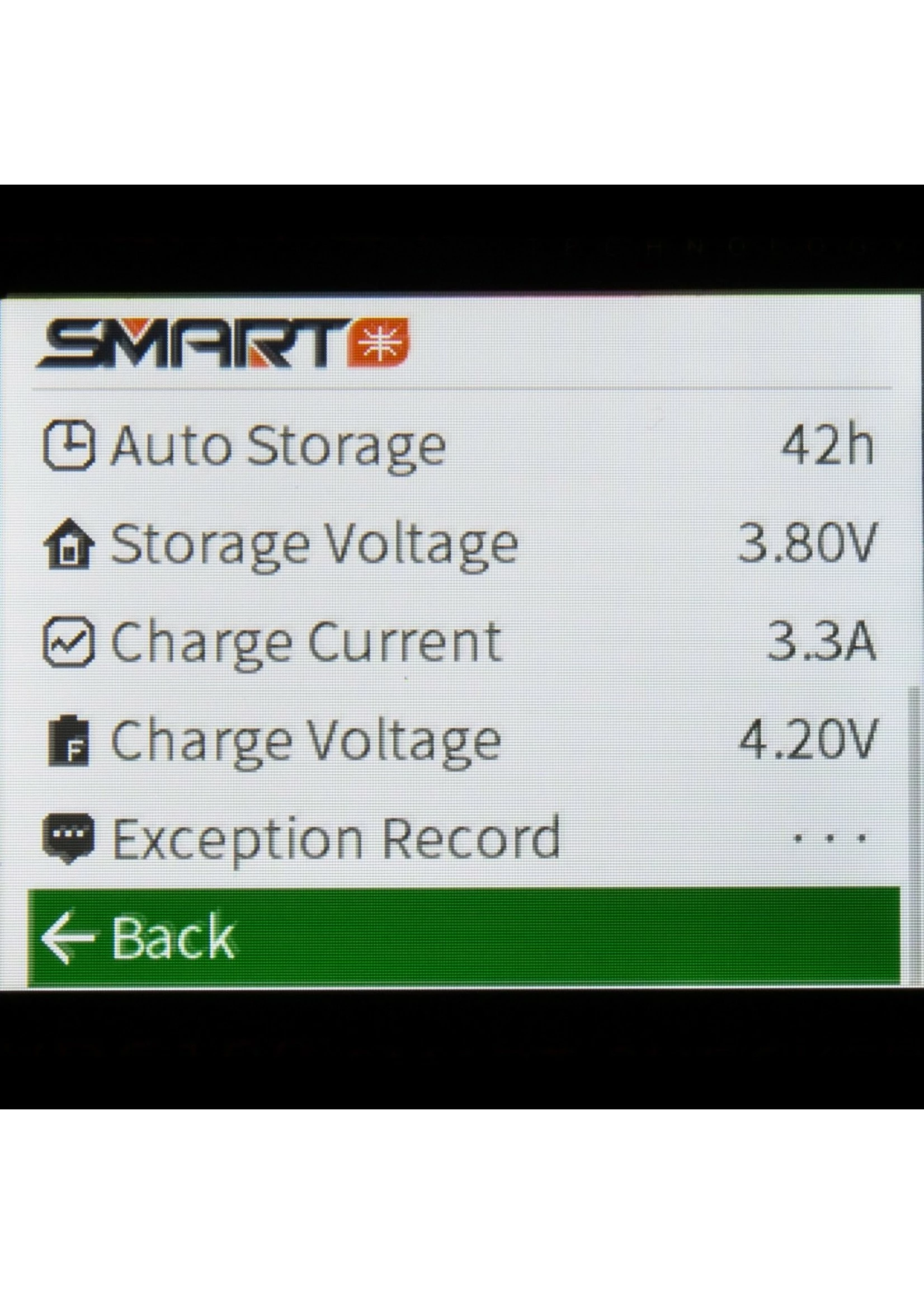 When used with a Spektrum Smart battery, you will be able to see and adjust many of the settings only available with a Spektrum Smart charger. This includes one connection for balance and battery level checking, and providing records like number of cycles, internal battery temperature and exception reports. You can even adjust Smart battery settings right from the XBC100.