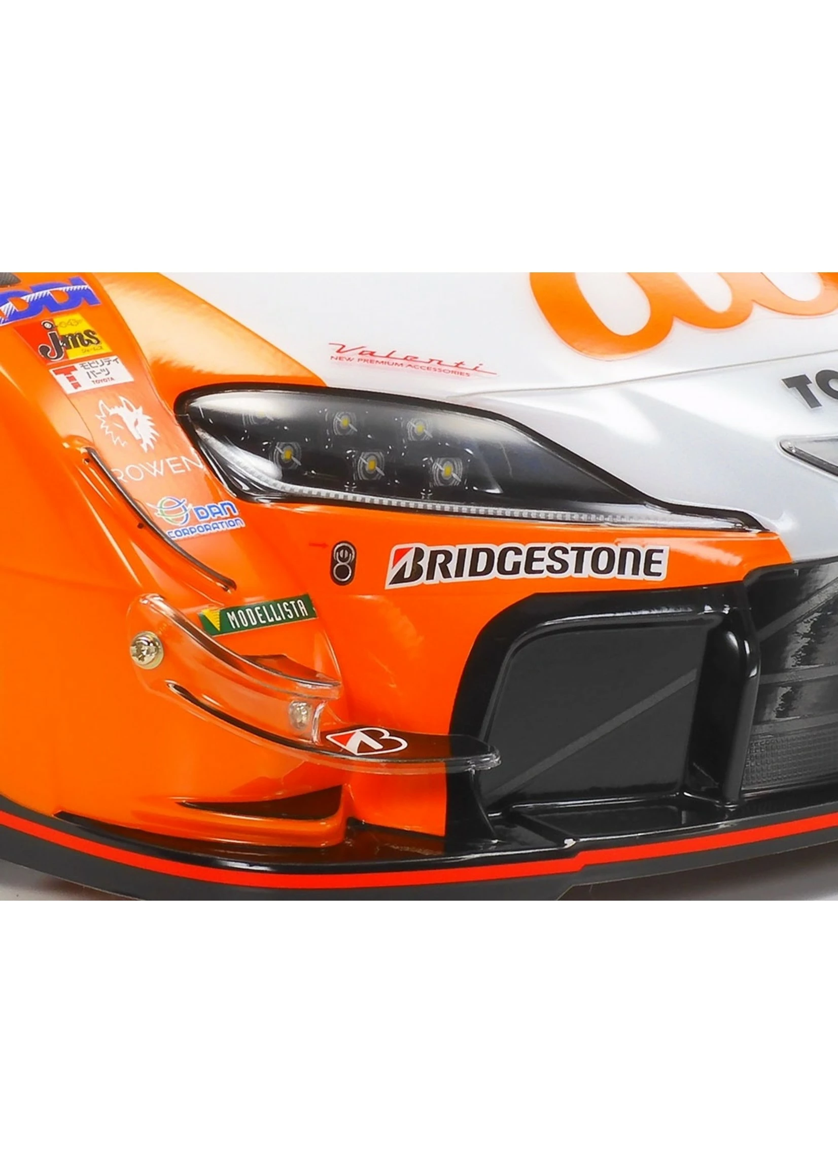 This R/C model recreates the Toyota GR Supra GT500. The GR Supra GT500 was developed in accordance with GT500 class regulations as a replacement for the LEXUS LC500 which flourished in three seasons from 2017 to 2019. With the streamlined car design of the roadgoing GR Supra, this racing car features a carbon monocoque frame, dedicated aerodynamic components and transmission, plus a 2,000cc inline 4-cylinder direct injection turbo-charged engine “RI4AG.”