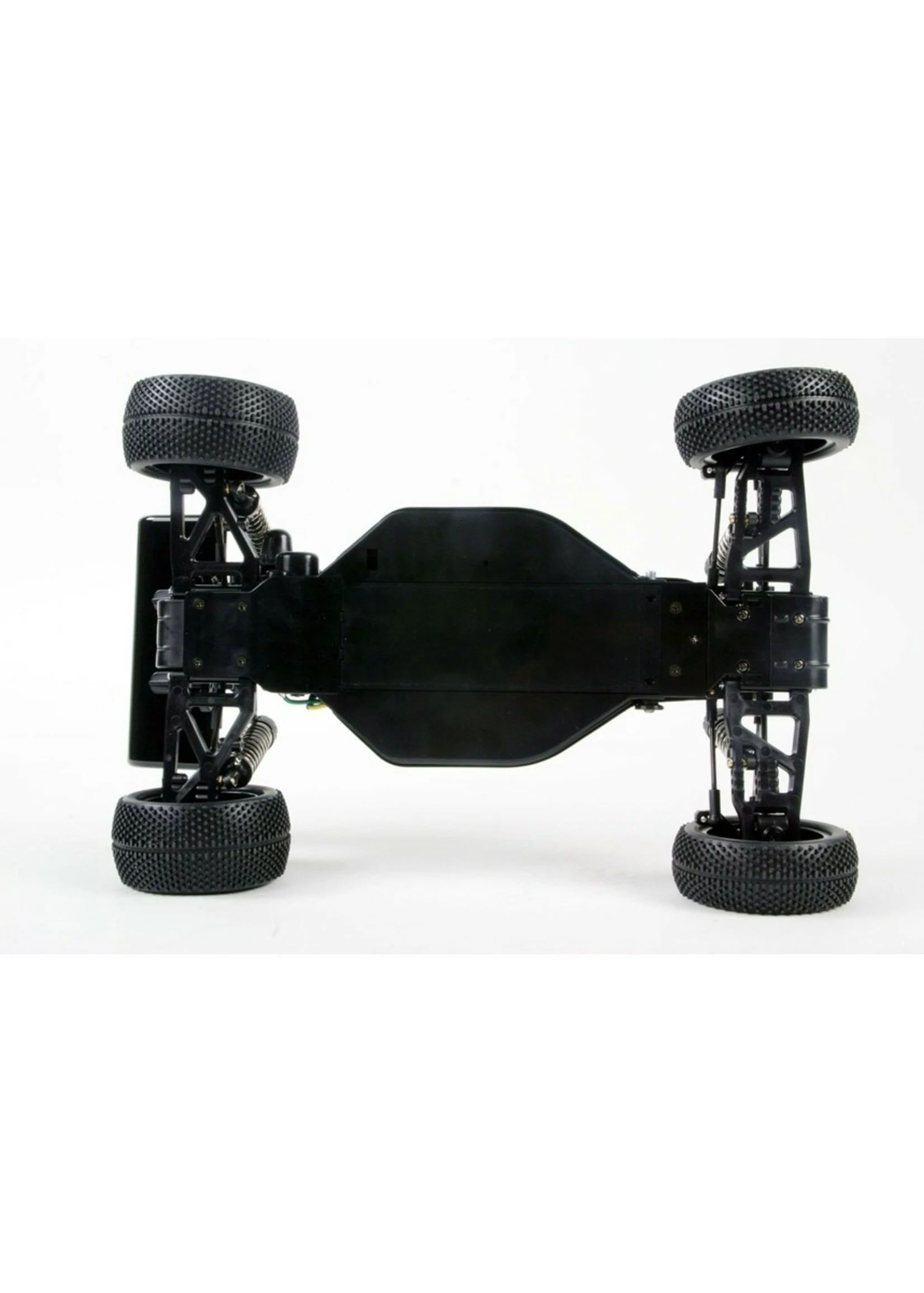This 1/10 scale 4WD buggy is specially designed to excel in off-road buggy performance driving. It features a mid-rear mounted motor and longitudinally mounted battery for optimum balance for jumping. Battery is inserted through the bottom of the chassis, eliminating need to remove body, which makes routine maintenance easy and quick. High performance shaft drive 4WD combines with suspension system featuring extra-long suspension arms for improved stability and off-road handling.