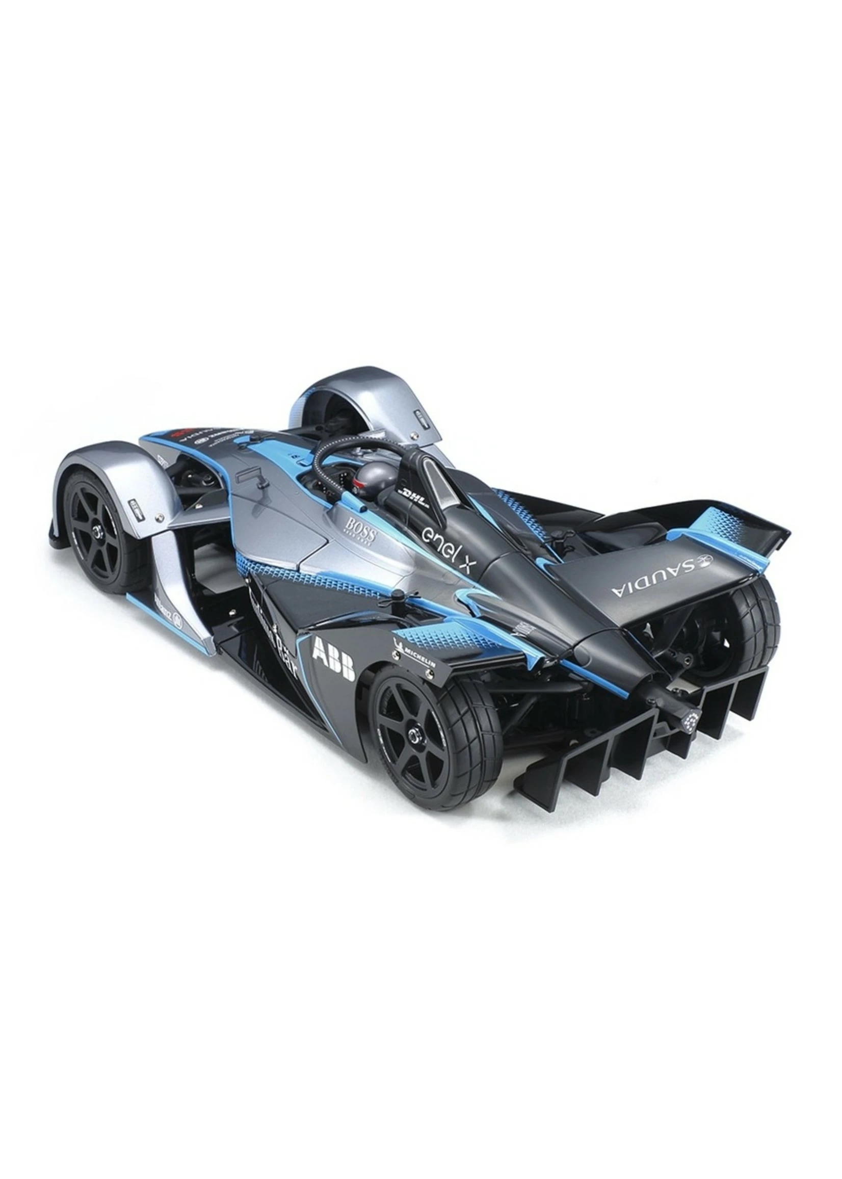This is an R/C model assembly kit depicting the GEN2 car used from 2018 in the Formula E championship, the pinnacle of electric car racing. The sleek, high-tech body with arch covered wheels is recreated in polycarbonate. Halo, mirrors and rear diffuser/bumper are separately molded components. Markings are included to recreate the Championship Livery car, and the model is based upon the shaft-driven 4WD of the TC-01 chassis.