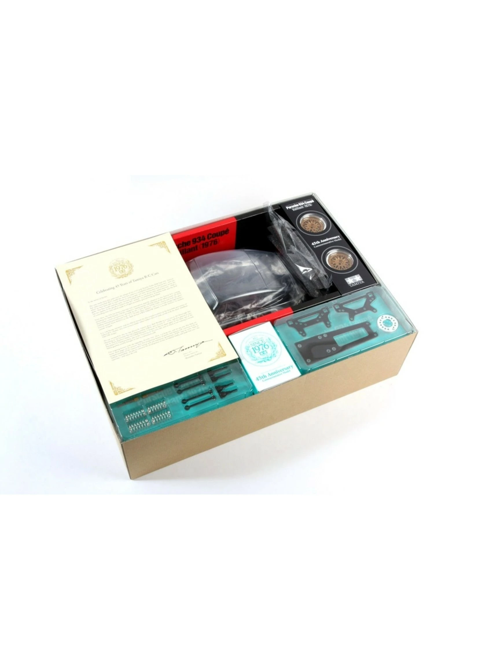 This 1/10 scale R/C kit is a color variation of the iconic Porsche Turbo RSR Type 934 as raced by Kremer Racing. The kit itself commemorates the 45th anniversary of the original Tamiya R/C release! The Porsche 934 holds a special place in Tamiya history. It was the first subject of our first R/C model release. This model features a white color body that recreates the Porsche Turbo RSR Type 934 which tussled at the top of races in the European Racing Championship in June 1976. The special release includes a photo-etched product plate and a one-page printed message by Tamiya’s Executive Chairman, Shunsaku Tamiya!