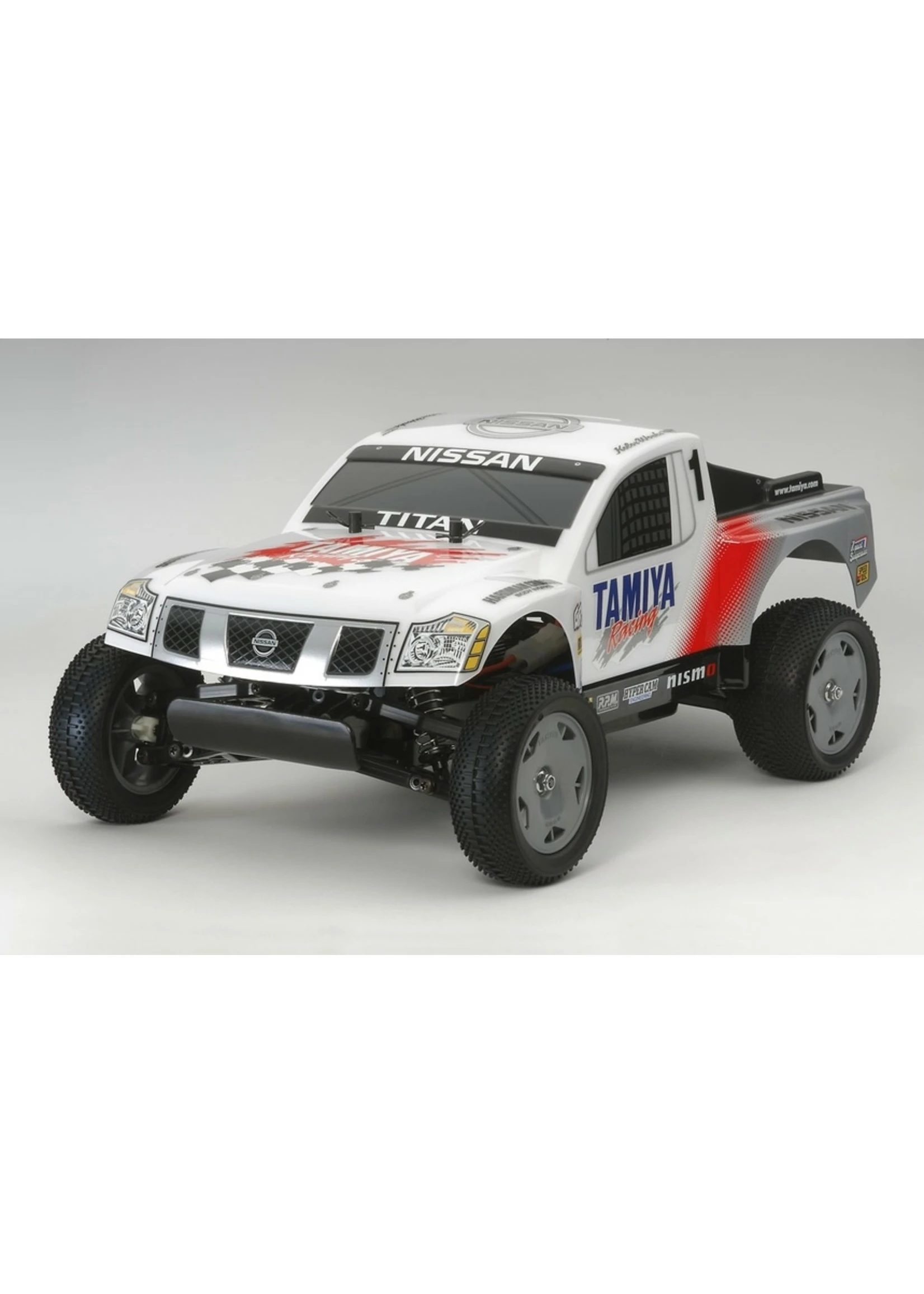 This is an easy to build Nissan Titan truck kit. The body is mounted on the Tamiya DT-02 platform buggy chassis, which makes it ideal for any new hobbyist building a construction kit for the first time. The Nissan Titan body replicates the truck as it was raced in the 2006 Championship Off-Road Racing (CORR) season in the United States.