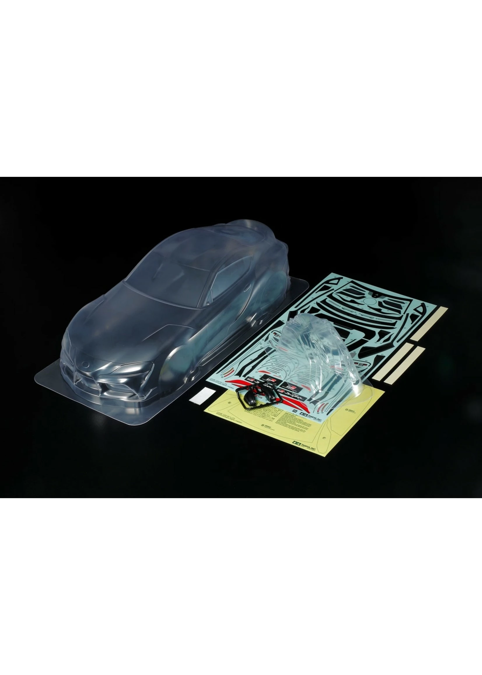 This is a polycarbonate body of the Toyota GR Supra. The lightweight version of the body parts is a great option for those competing in GT Class races as it provides a nimbler handling model and lower center of gravity.