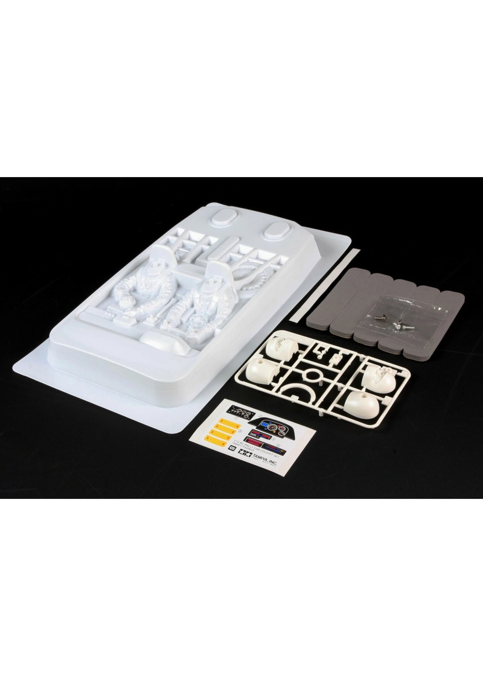 This is an updated version of Item 50463 (RC Rally Car Cockpit Set). The cockpit set can be fitted to Tamiya 1/10 rally car body sets to add an extra level of realism. Thanks to the newly-included urethane sponge, it is compatible with a large range of chassis widths. It can be painted as users like using plastic model paints also available through Tamiya.