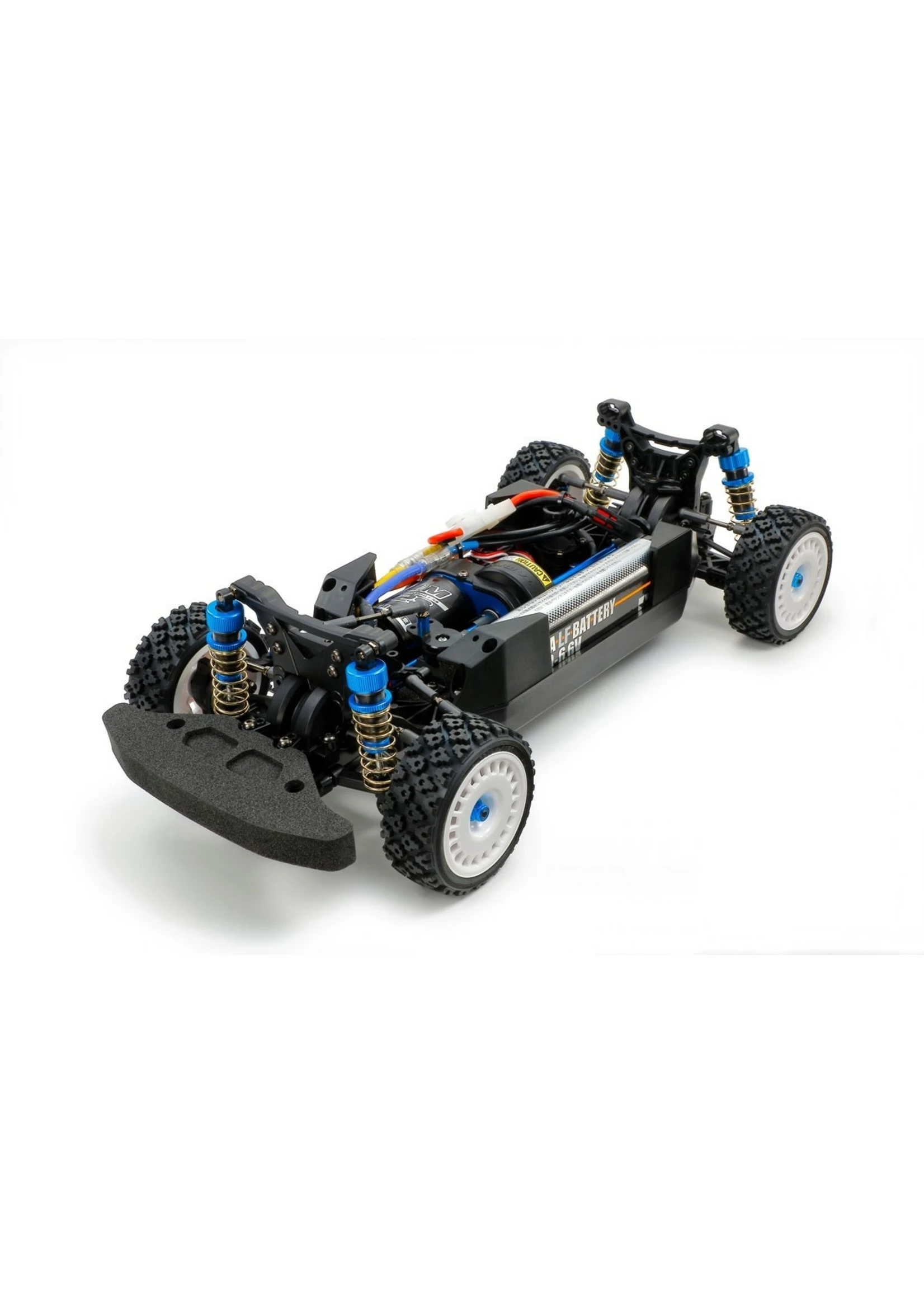- Requires: Tamiya Rally Body, 2-channel radio, servo, ESC, 540-type motor, and 7.2-7.4volt battery with compatible charger.Â