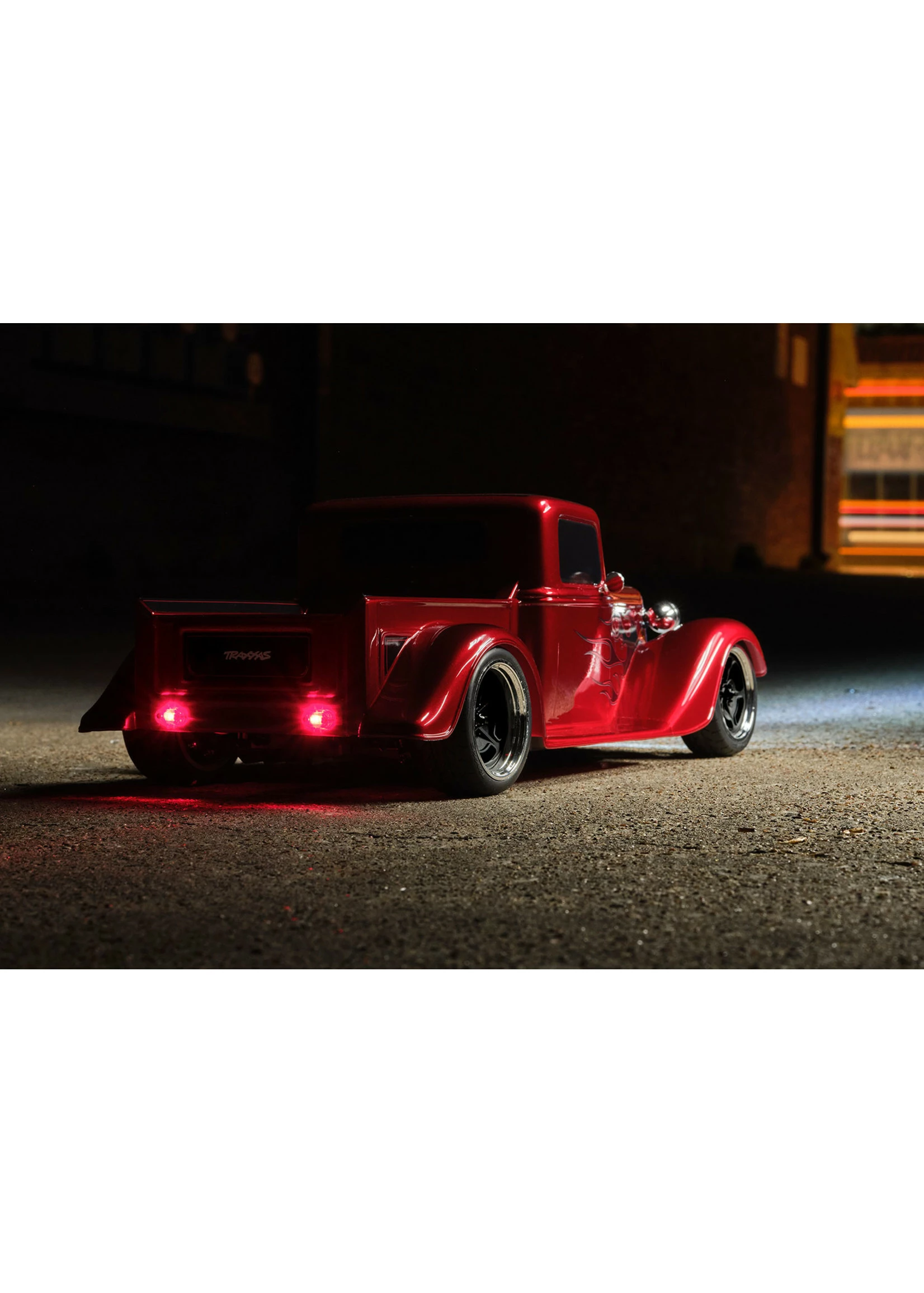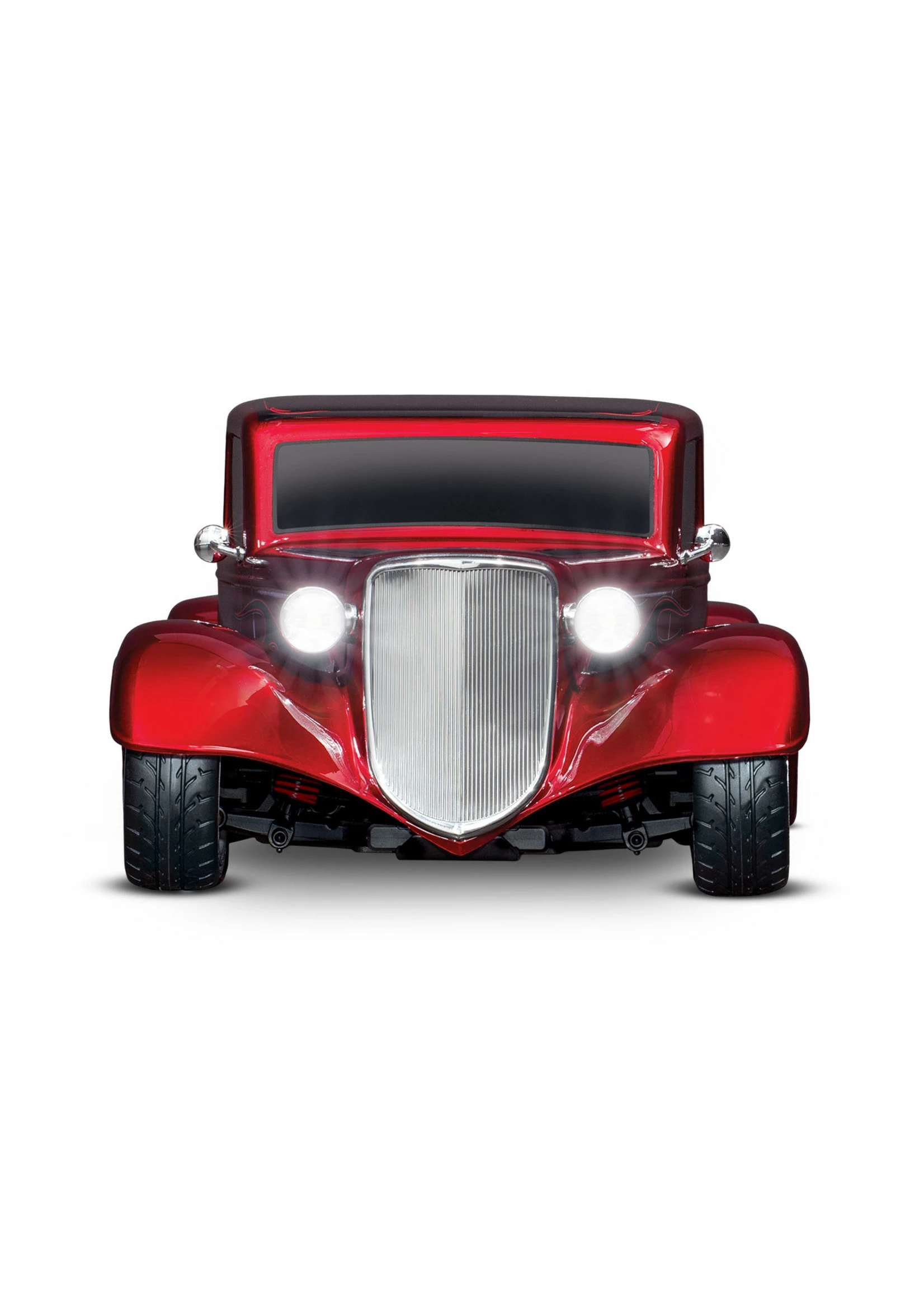 A steeply-raked chrome grille flows into the long narrow hood and aggressively chopped roof. Chrome headlights flank the sculpted fenders with full running boards. Deep, lustrous paint and wild graphics complete the package. The look is pure classic hot rod and Traxxas brings this timeless style to life in 1/10 scale.