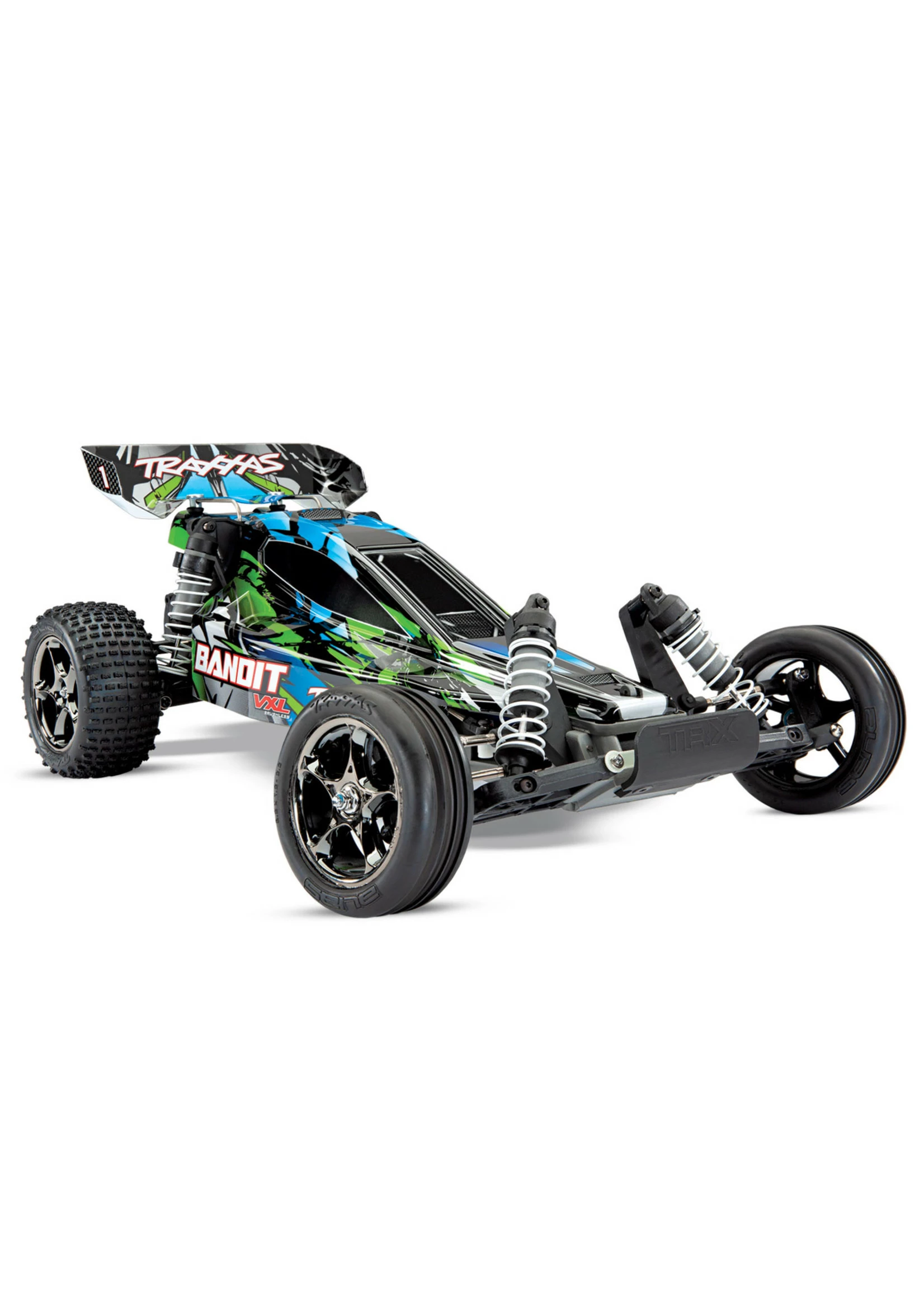 The Bandit VXL expands the Extreme Sports Buggy™ legacy with more power than you ever thought possible. The Velineon Brushless Power System® accelerates into the stratosphere with jet-like thrust and incredible 70+mph top speed!* Traxxas Stability Management® keeps it under control with arrow straight acceleration and sure-footed stopping power. The Bandit VXL is a low-slung, lightweight speed machine that’s rocket fast on pavement and rips incredible roost off-road. Bandit VXL is a driver’s machine that will put your skills to the test with its mind-blowing top speed and lightning quick handling response.