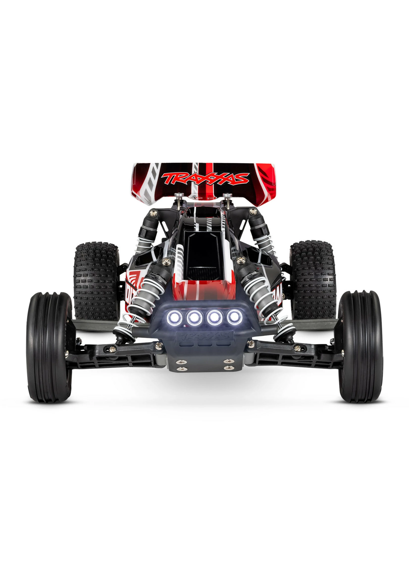 The Traxxas Bandit® elevates RC buggy performance to a whole new level with faster speeds, innovative technology, hobby-grade durability, and a budget-friendly price. Bandit’s sleek, lightweight chassis delivers razor-sharp handling and blazing 35+ MPH* speed with blazing LED lights to guide the way. Pull the trigger and the Bandit rips massive rooster tails, soars over jumps, and lays down the power for excitement at every turn. Equally at home off-road or on pavement, Bandit’s fully waterproof electronics make even the wildest all-weather adventures possible. Step up to genuine Traxxas quality and performance and discover a whole new level of fun with the Traxxas Bandit.