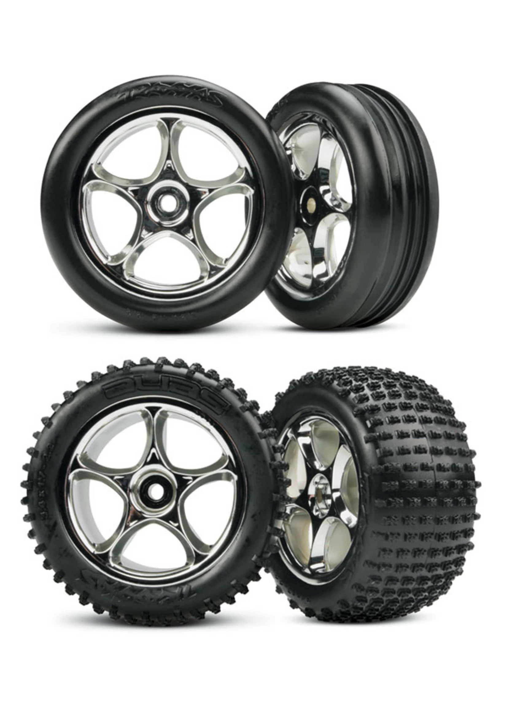 The Traxxas Bandit takes RC fun to a whole new level with faster speeds, innovative technology, hobby-grade durability, and a low budget-friendly price. The sleek, lightweight chassis keeps weight down low for razor-sharp handling and blazing 35+mph speed. The powerful Titan® 12-turn motor and waterproof XL-5® Electronic Speed Control power the Bandit through water, mud, and snow for wild all-weather adventures. The advanced TQ™ 2.4GHz radio system provides long-range, glitch-free performance while ripping rooster tails in the mud or soaring over jumps. The included high-capacity 8.4V NiMH Power Cell™ battery provides long run times and charges quickly on the included 4-amp DC Peak Detecting Fast Charger. Step up to genuine Traxxas quality and performance and discover a whole new level of fun with the Traxxas Bandit!