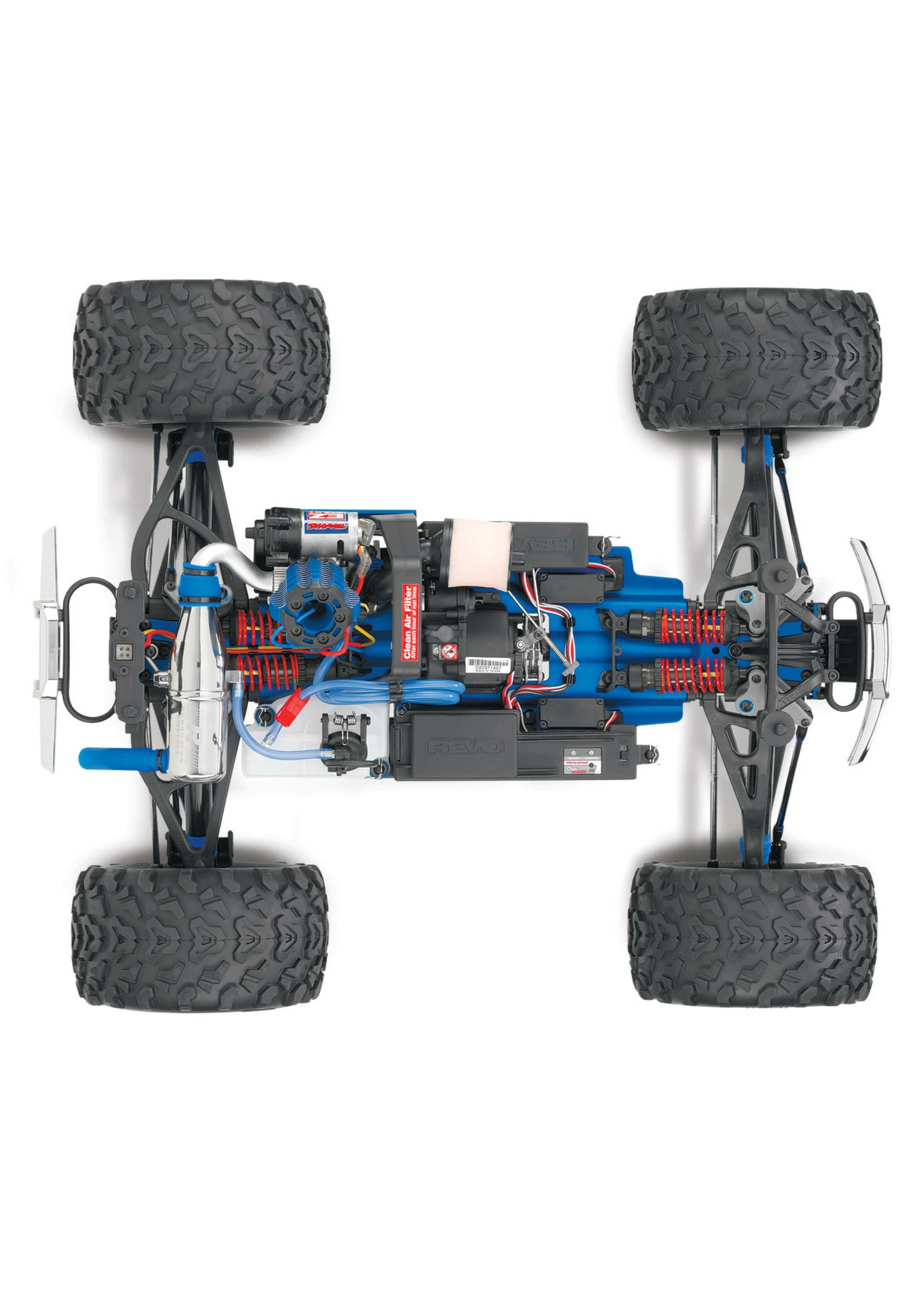 Revo 3.3 is Ready-To-Driveâ„¢, complete with rechargeable NiMH batteries for the on-board radio gear and EZ-Start® electric engine starting system. In addition to the cost savings of replacing disposable alkaline cells with a rechargeable receiver battery, the 5-cell Traxxas NiMH 1200mAh receiver pack also provides superior performance with Revo 3.3’s high-torque digital servos. For reliable engine-starting performance, the included EZ-Start pack features rugged construction and high-capacity cells for all-day power. When it’s time to recharge, reach for the included 2amp peak detecting fast charger. Only Traxxas offers an RTR nitro monster truck package that is so complete.