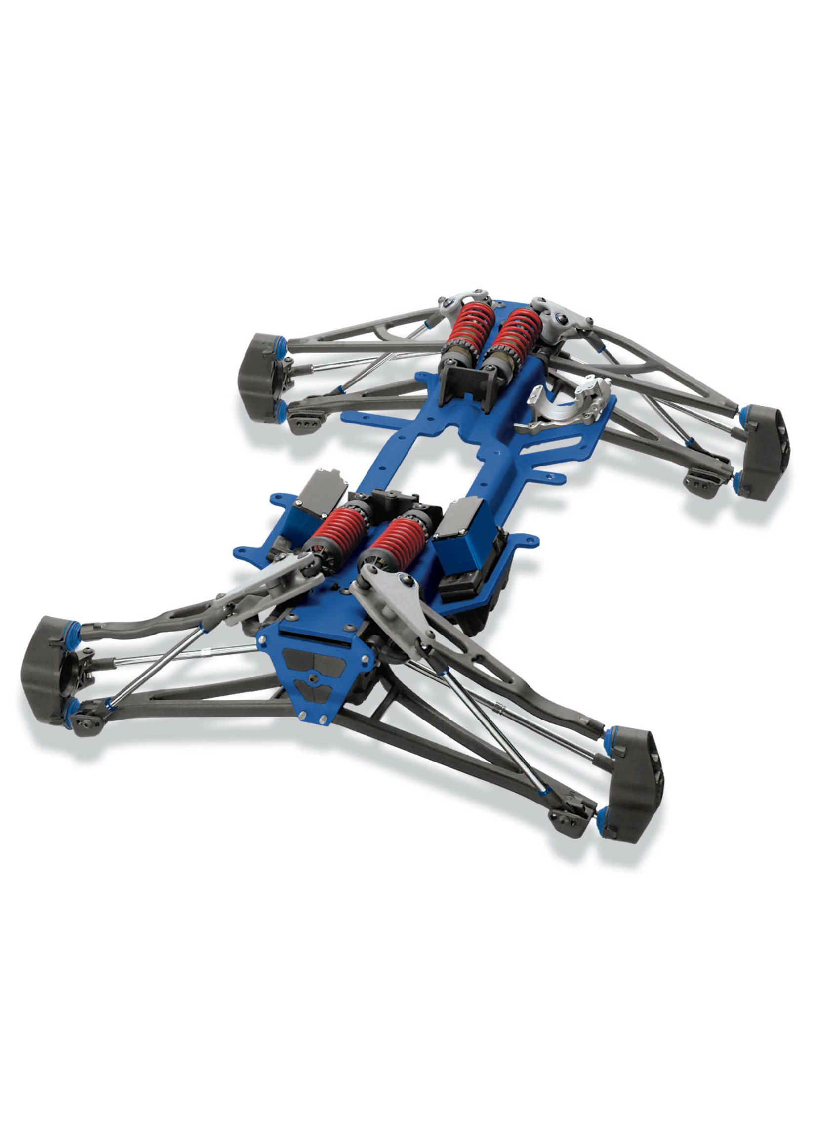 Revo’s specifications are more than just an impressive list of features. They are each specifically engineered and integrated into the model to provide capability, convenience, and most importantly, fun! Revo 3.3’s heavy-duty reversing transmission lets you easily back out of tight spots with the flick of a switch, while the OptiDrive®Electronic Transmission Control guarantees safe, smooth engagement. The Traxxas TQi 2.4GHz radio system features the exclusive Traxxas Link wireless Module with factory-installed telemetry sensors, a revolutionary concept that harnesses the power of your Android, Apple iPad, iPhone or iPod touch to create the ultimate radio system. Geodeâ„¢ chrome wheels with 17 mm hex hubs wear massive 6.3″ Maxx®-sized tires for big ground clearance and total traction in all conditions. Revo 3.3’s dual-digital servo steering system delivers 250 oz.-in of torque for powerful, responsive handling, plus they’re waterproof for ultimate reliability.