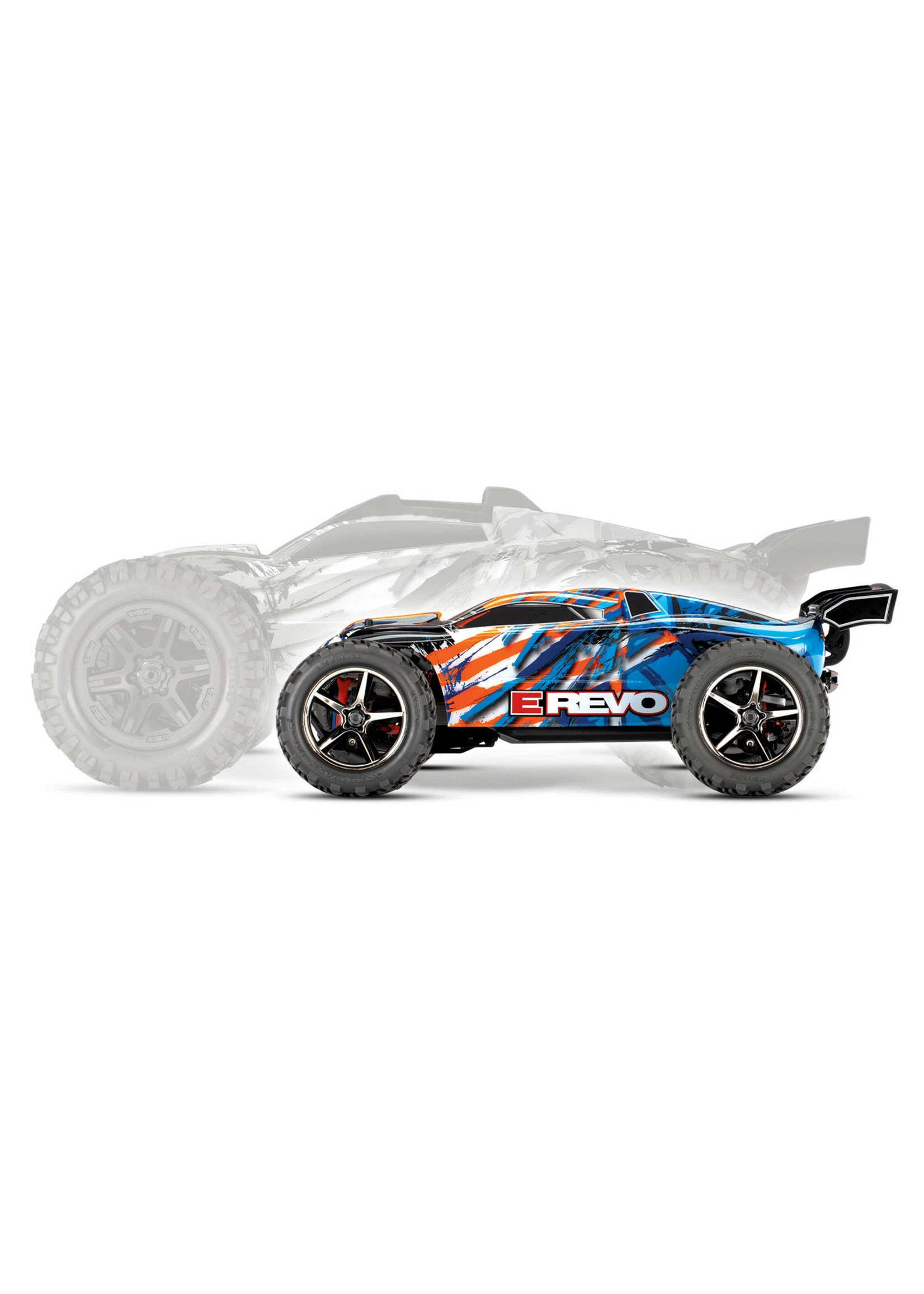 Traxxas sets the standard for power, performance and innovation. All the quality and waterproof capability you expect from Traxxas is available in 1/16 scale with the 1/16 E-Revo. At 14 inches long, this E-Revo is about half the size of the 1/10-scale E-Revo. But don’t call it a “mini”—this is a whole new category of RC performance and fun that no mere mini-model can match. Beneath the factory-finished polycarbonate shell, you’ll find the winning suspension technology of the eight-time National Champion Traxxas Revo®, high-torque Titan 550 power, and the convention-busting innovation of the E-Revo.