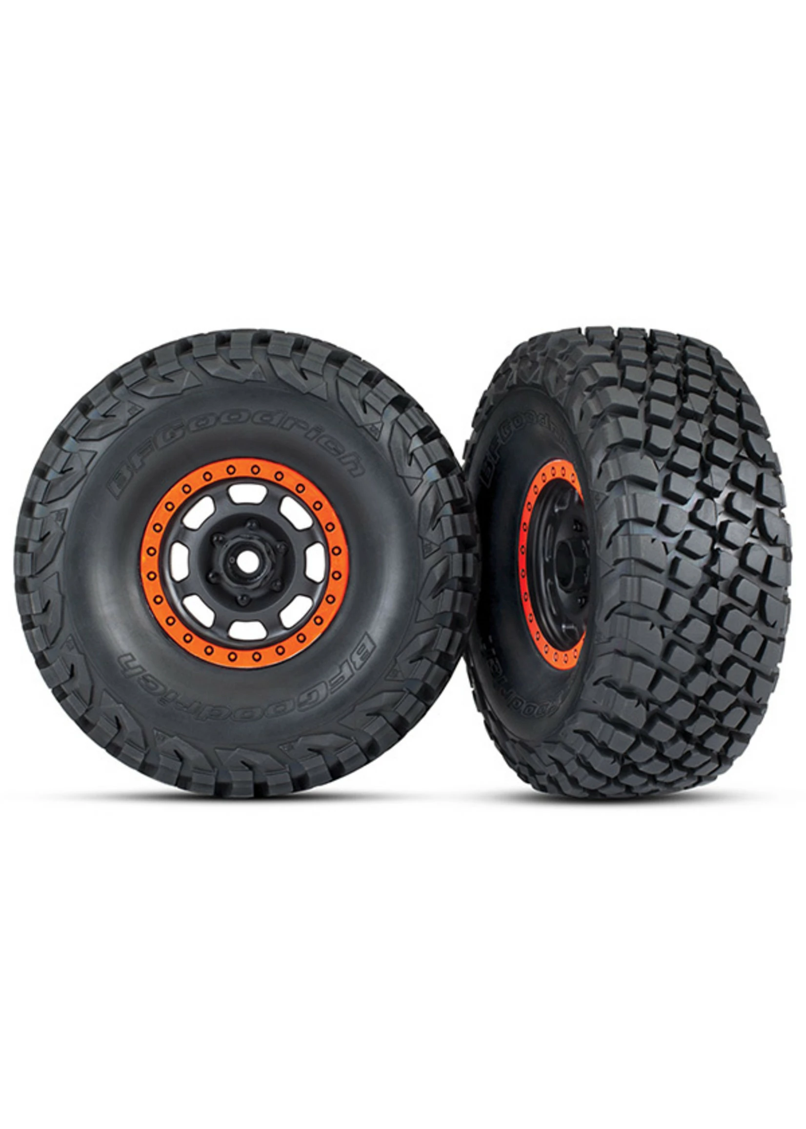 Includes: 2 Desert Racer® wheels, black with orange beadlock & BFGoodrich® Baja KR3 tires.