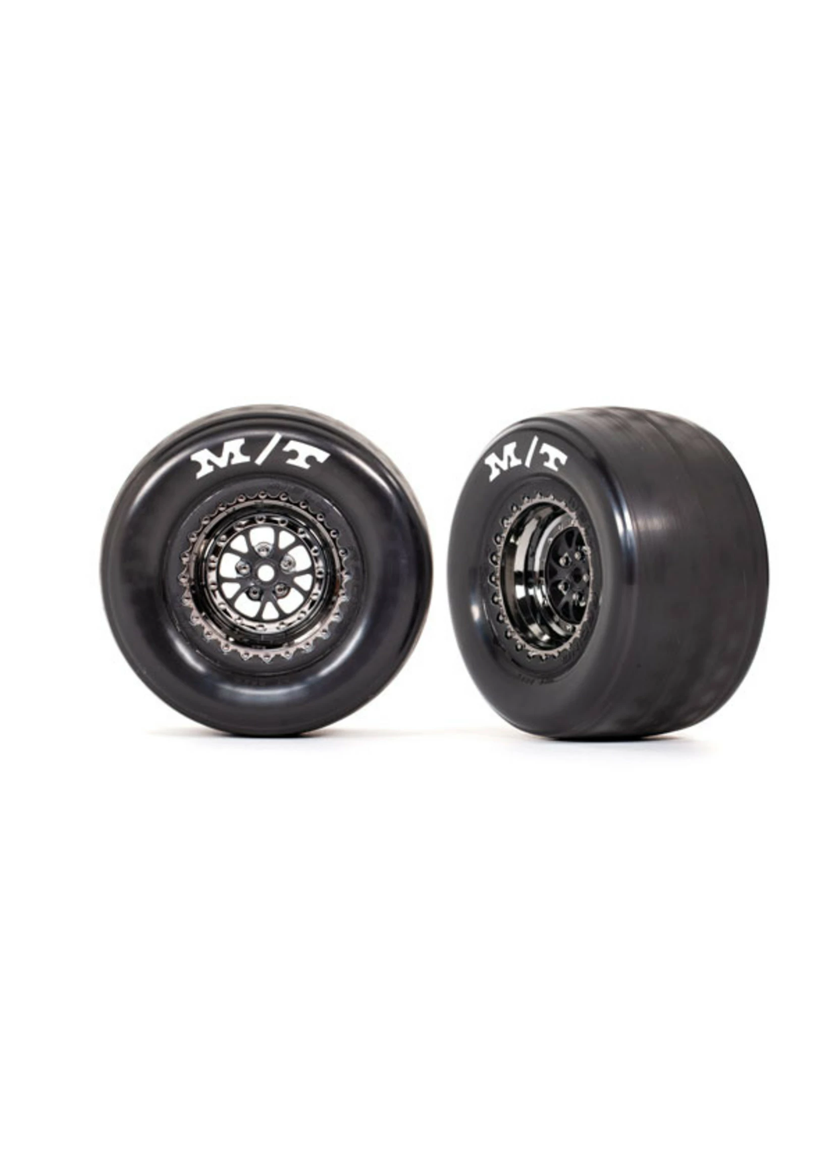 Wide Mickey Thompson drag slicks come pre-glued to black chrome Weld wheels to replicate the legendary look and performance of the real thing. Developed with extensive testing, the slicksā unique compound is formulated to balance long tire life with maximum traction.
