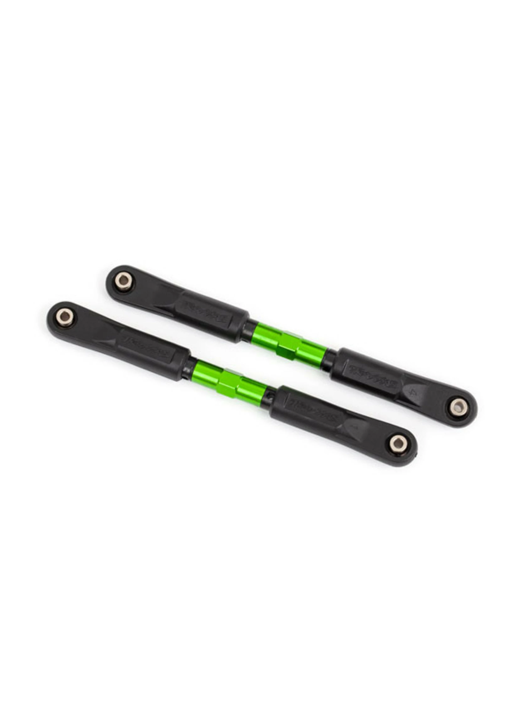Camber links, front, Sledge® (TUBES green-anodized, 7075-T6 aluminum, stronger than titanium) (117mm) (2)/ rod ends, assembled with steel hollow balls (4)/ aluminum wrench, 8mm (1) for the Traxxas Sledge.