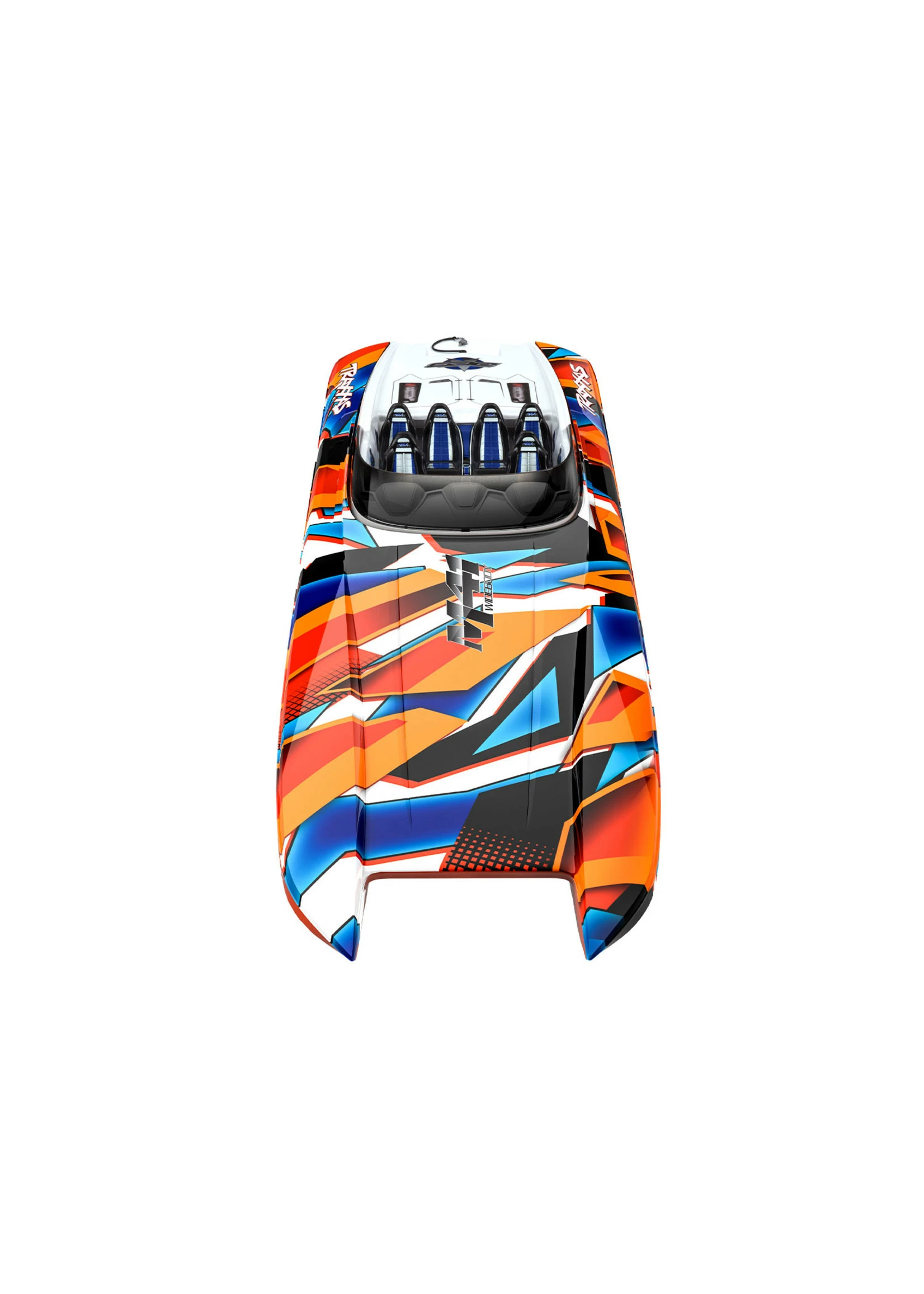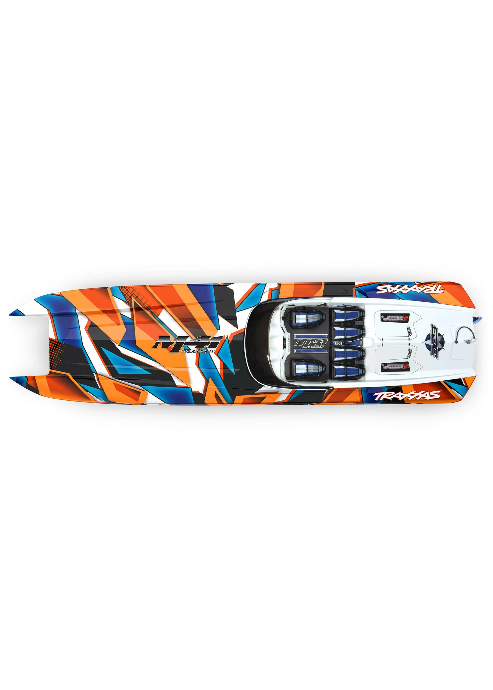 Traxxas 57046-4: Fully assembled, Ready-To-Race® Catamaran, TQi™ 2.4GHz radio system, Traxxas Stability Management,™ Velineon® 540XL Brushless Motor, VXL-6s Marine ESC, and factory-applied graphics.