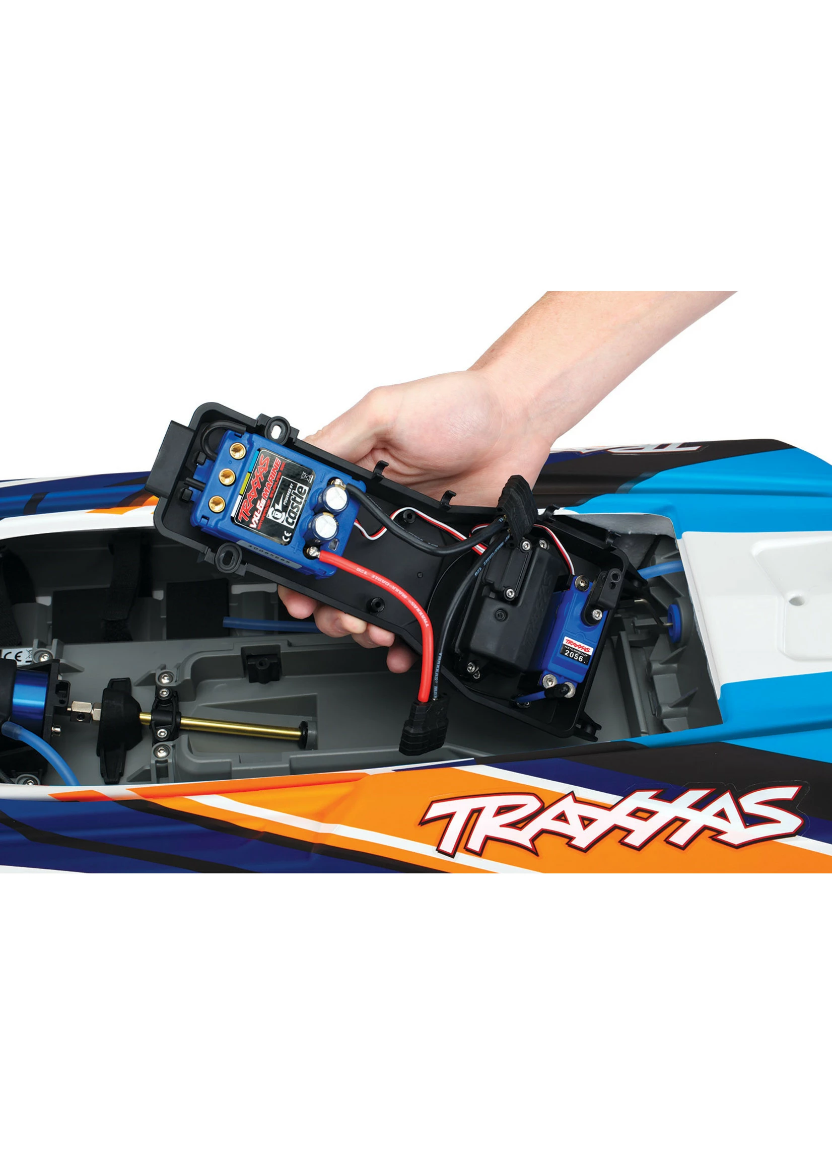 Traxxas 57046-4: Fully assembled, Ready-To-Race® Catamaran, TQi™ 2.4GHz radio system, Traxxas Stability Management,™ Velineon® 540XL Brushless Motor, VXL-6s Marine ESC, and factory-applied graphics.